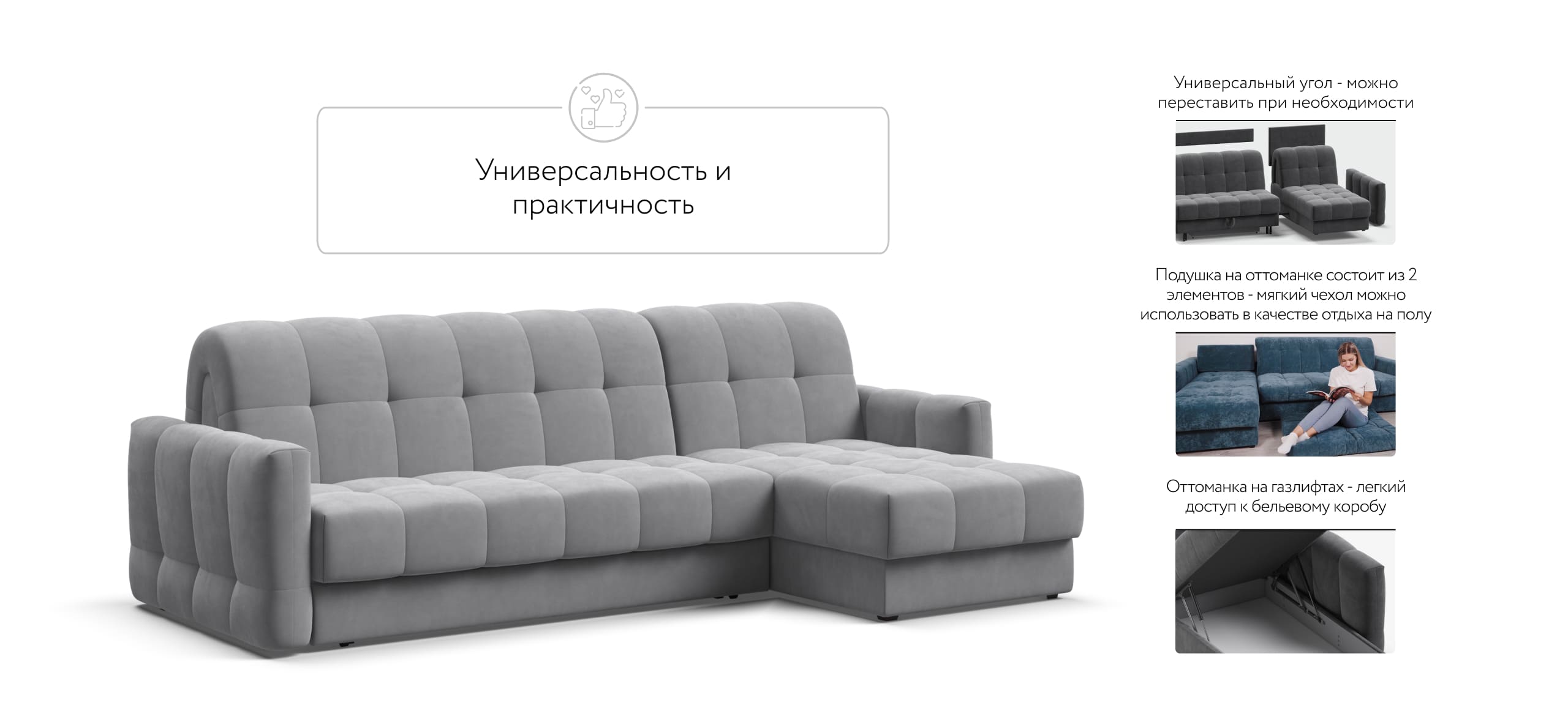 В комплекте с диваном идет бельевой короб BOSS Save и не нужно за него доплачивать, а также дополнительный короб в оттоманке!