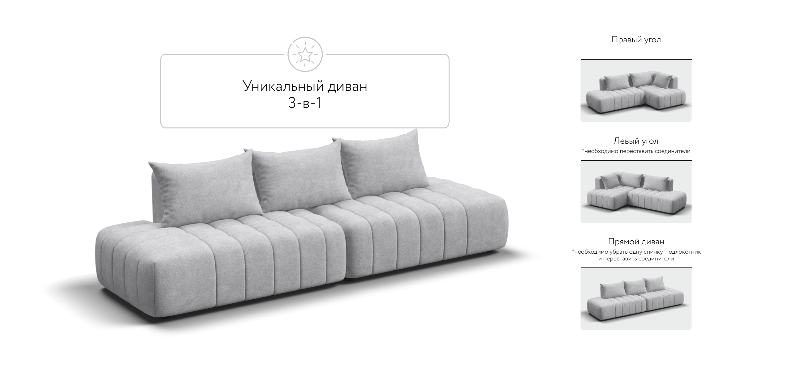 Уникальный диван 3-в-1: прямой, левый угол, правый угол