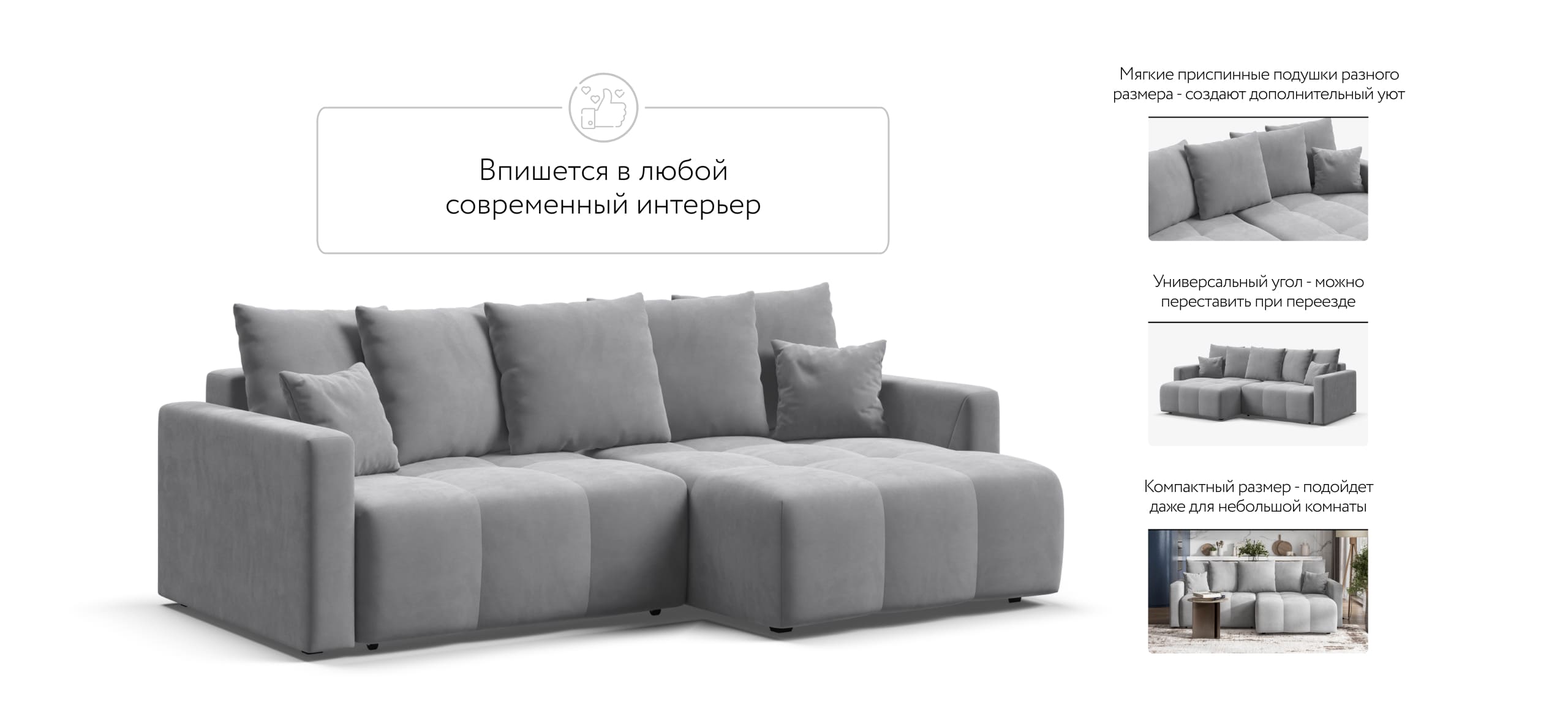 Мягкие приспинные подушки разного размера обеспечивают комфорт во время отдыха и создают дополнительный уют