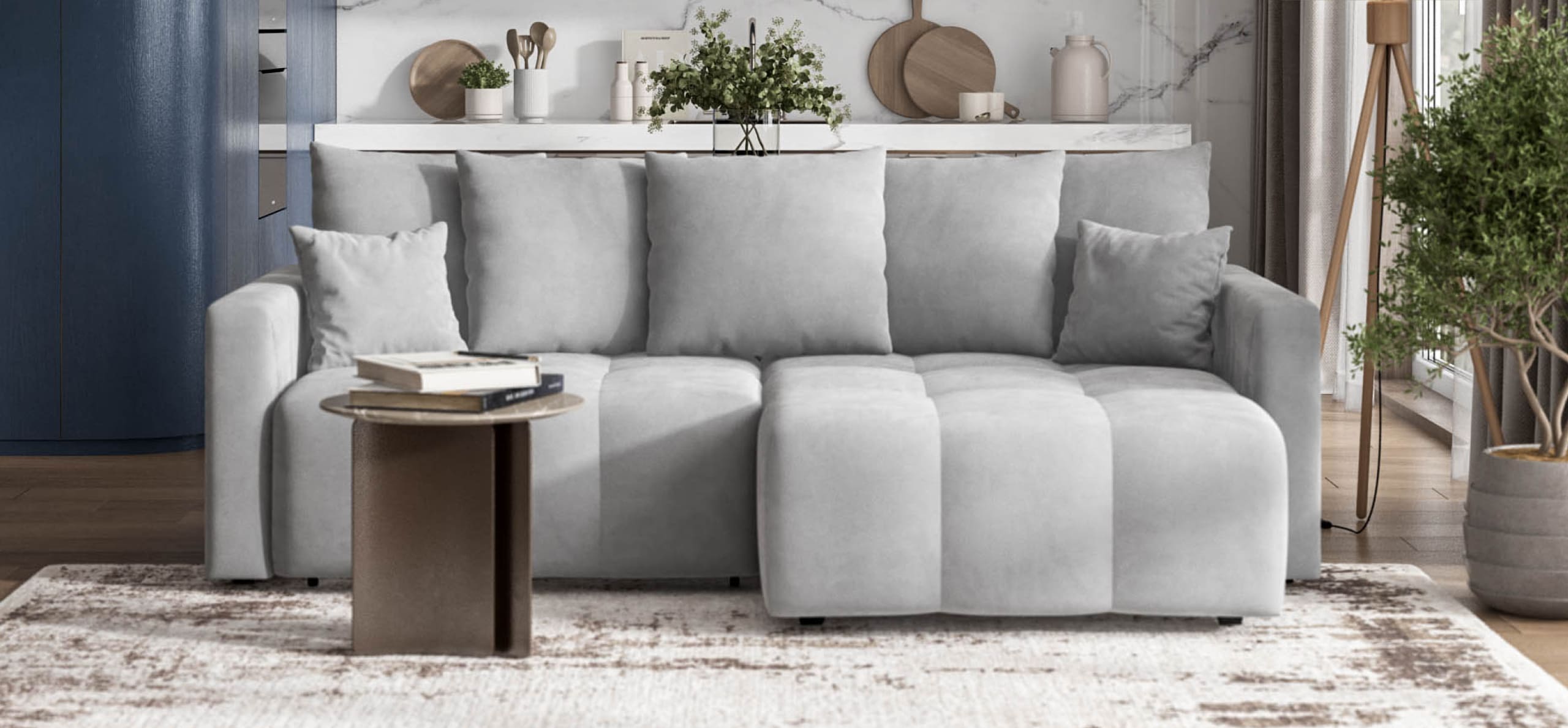 Простой и надежный механизм еврокнижка позволяет ставить диван вплотную к стене
