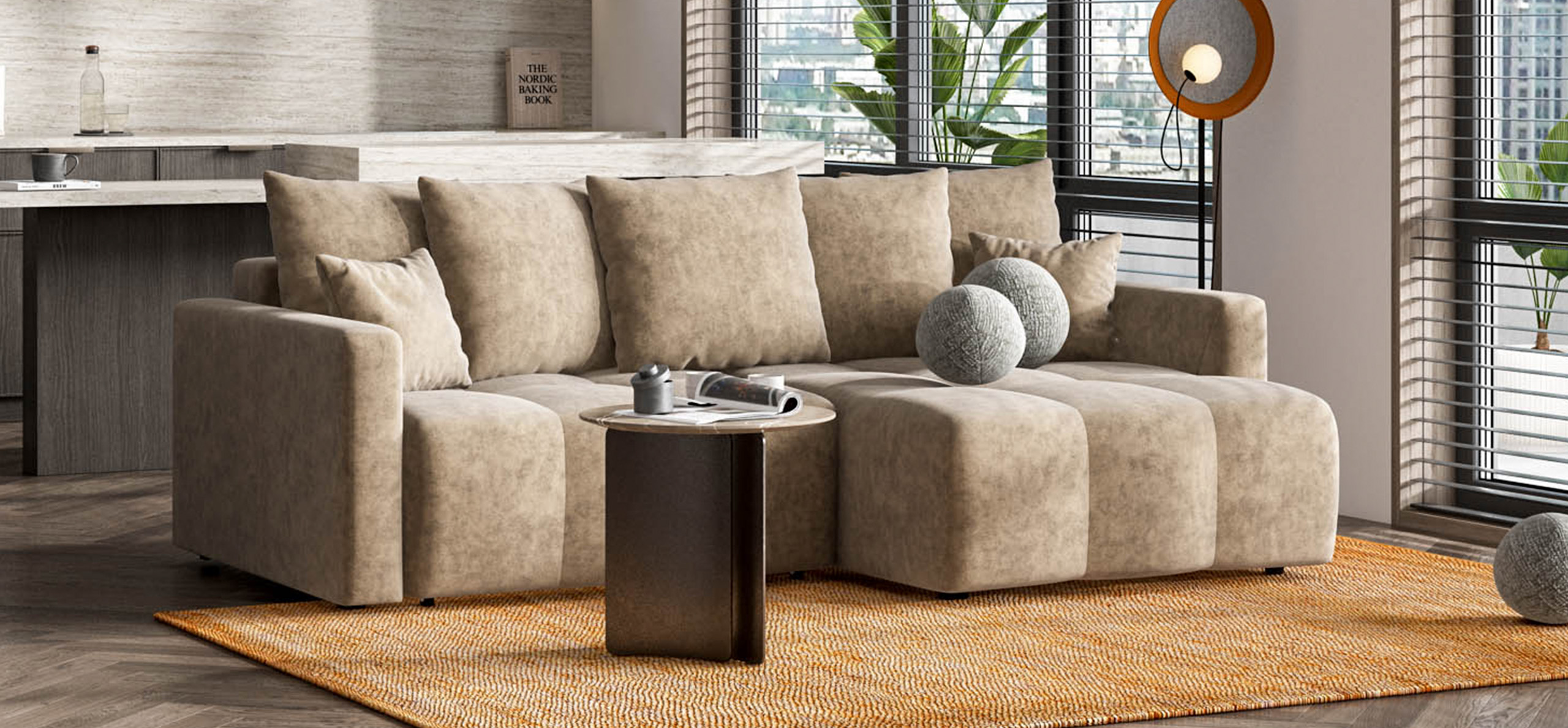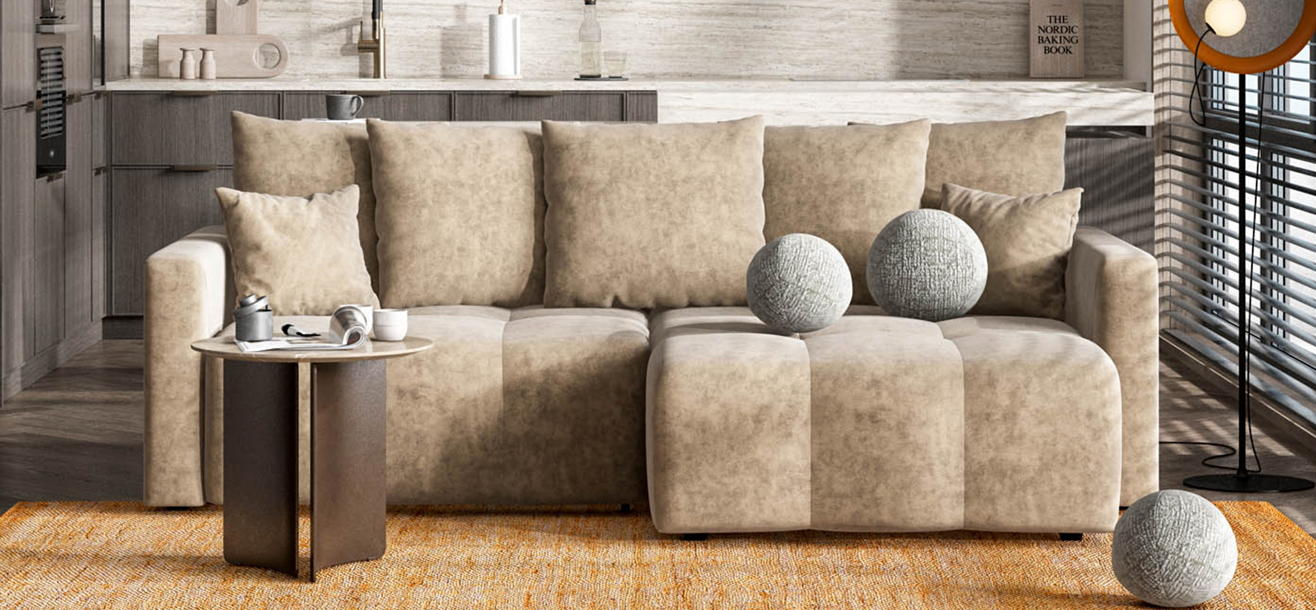 Простой и надежный механизм еврокнижка позволяет ставить диван вплотную к стене