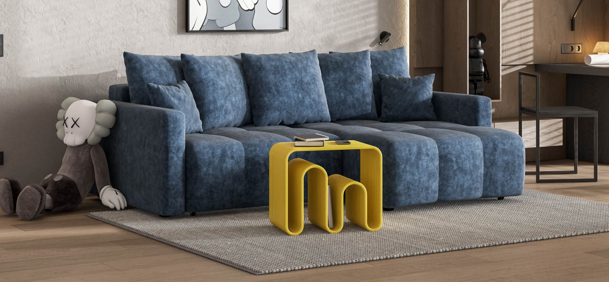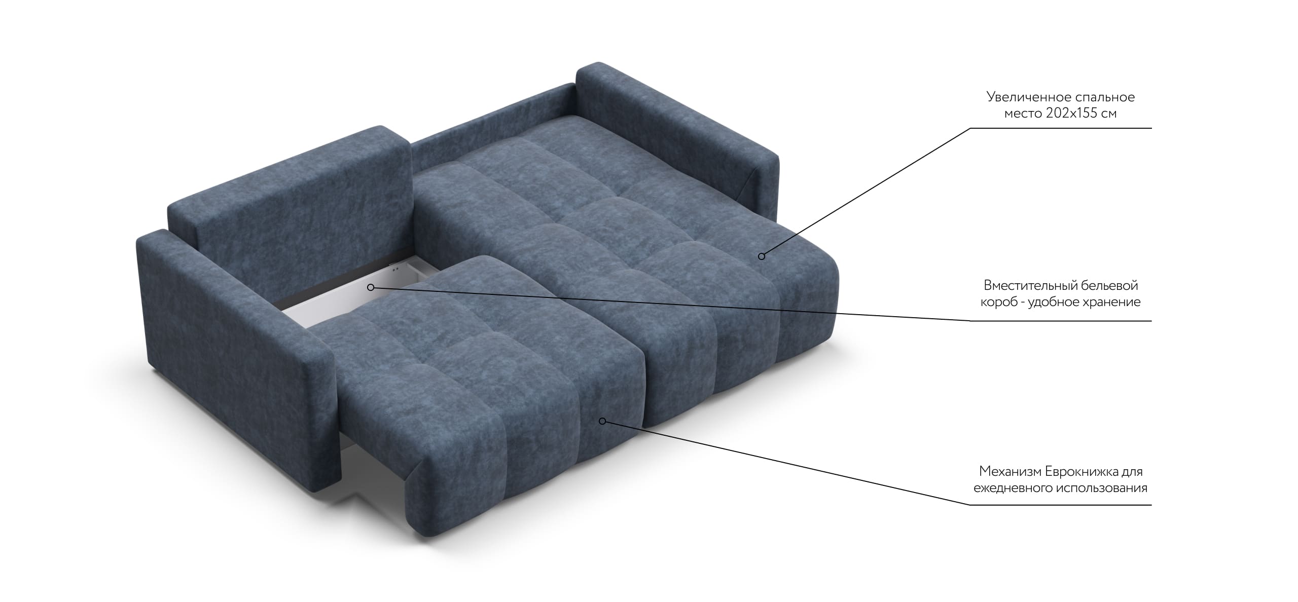 Простой и надежный механизм еврокнижка позволяет ставить диван вплотную к стене