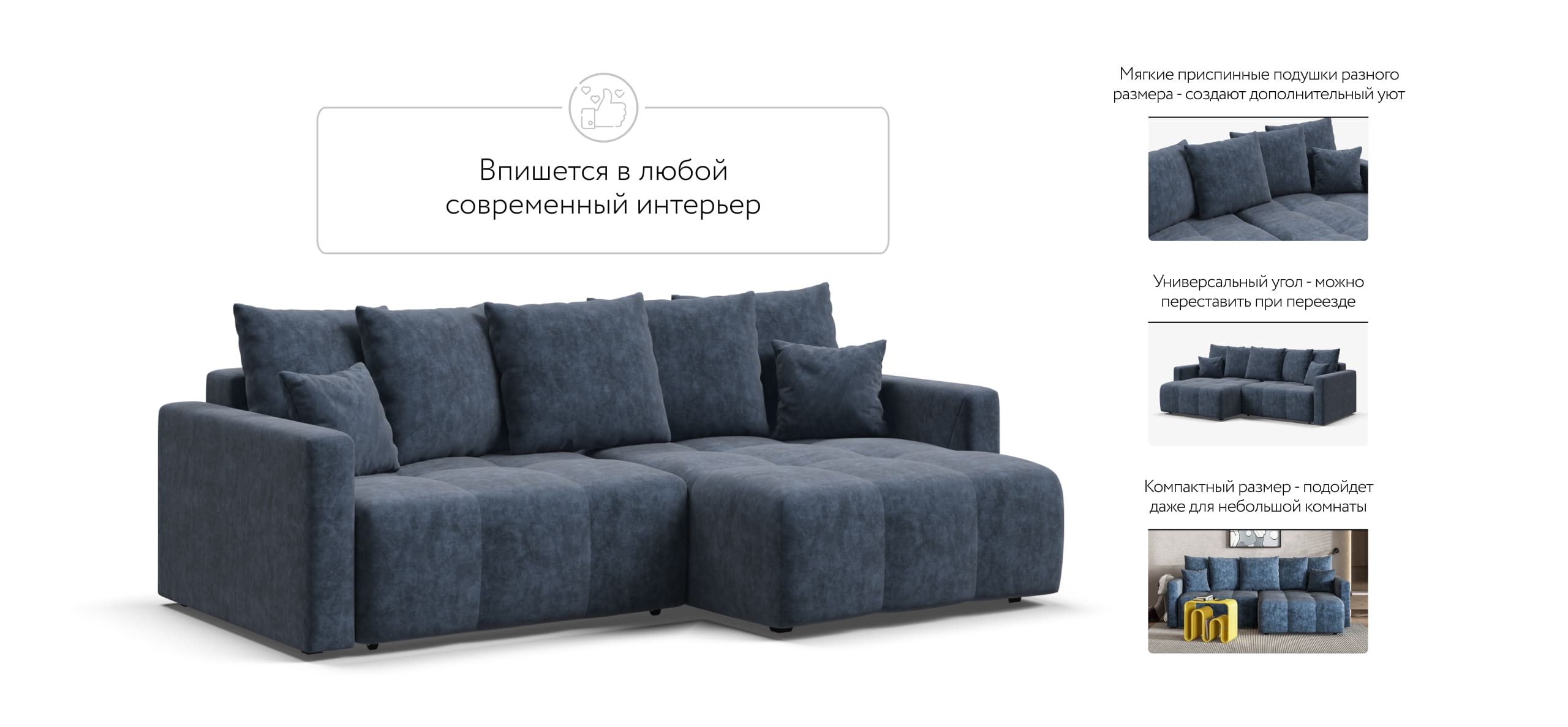 Угловой диван BOSS TREND Велюр Royal топаз NEW