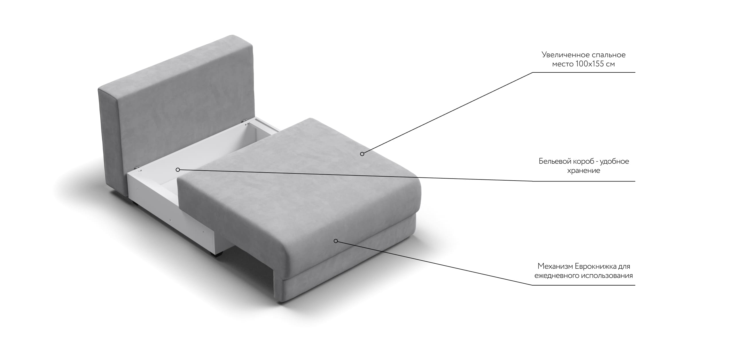 Простой и надежный механизм еврокнижка с легкостью превратит модульную систему в комфортное спальное место.