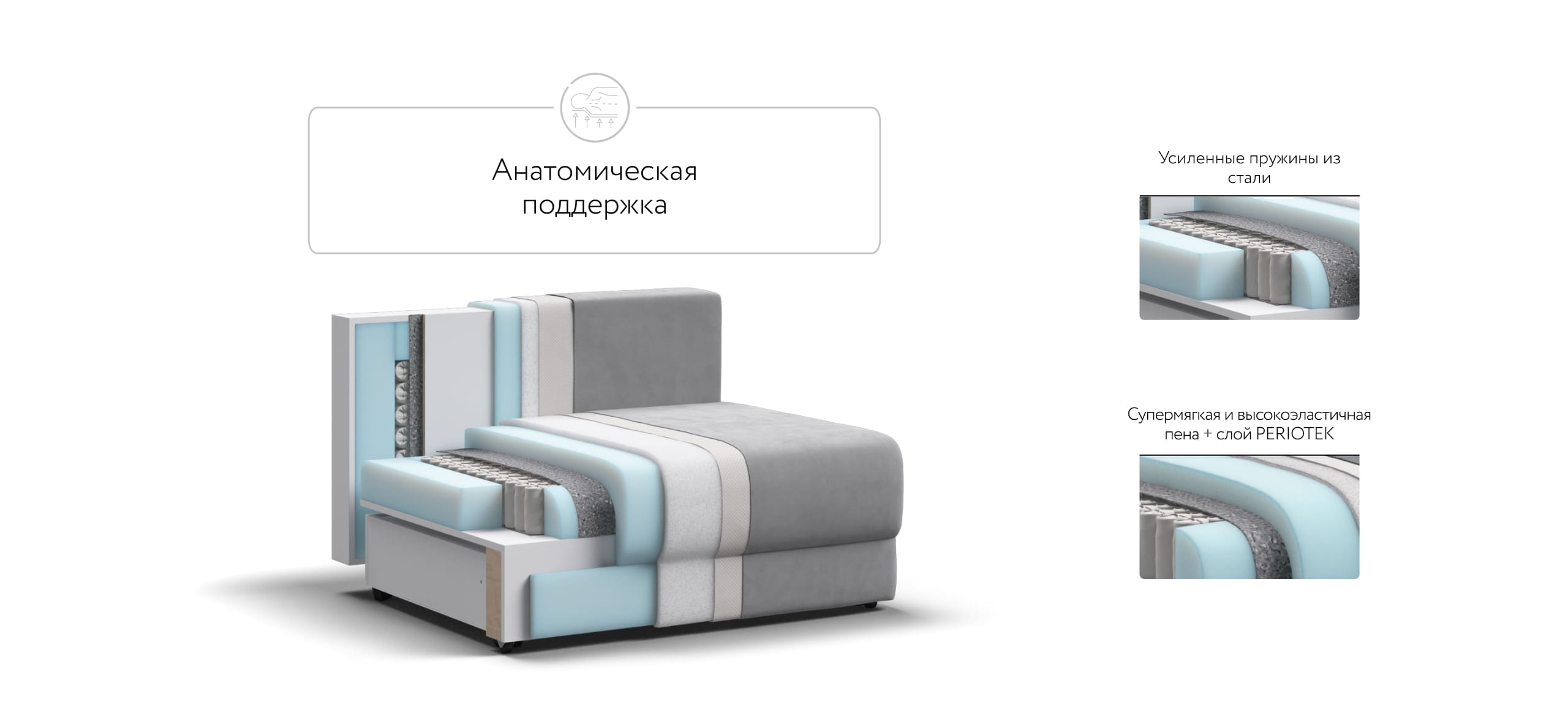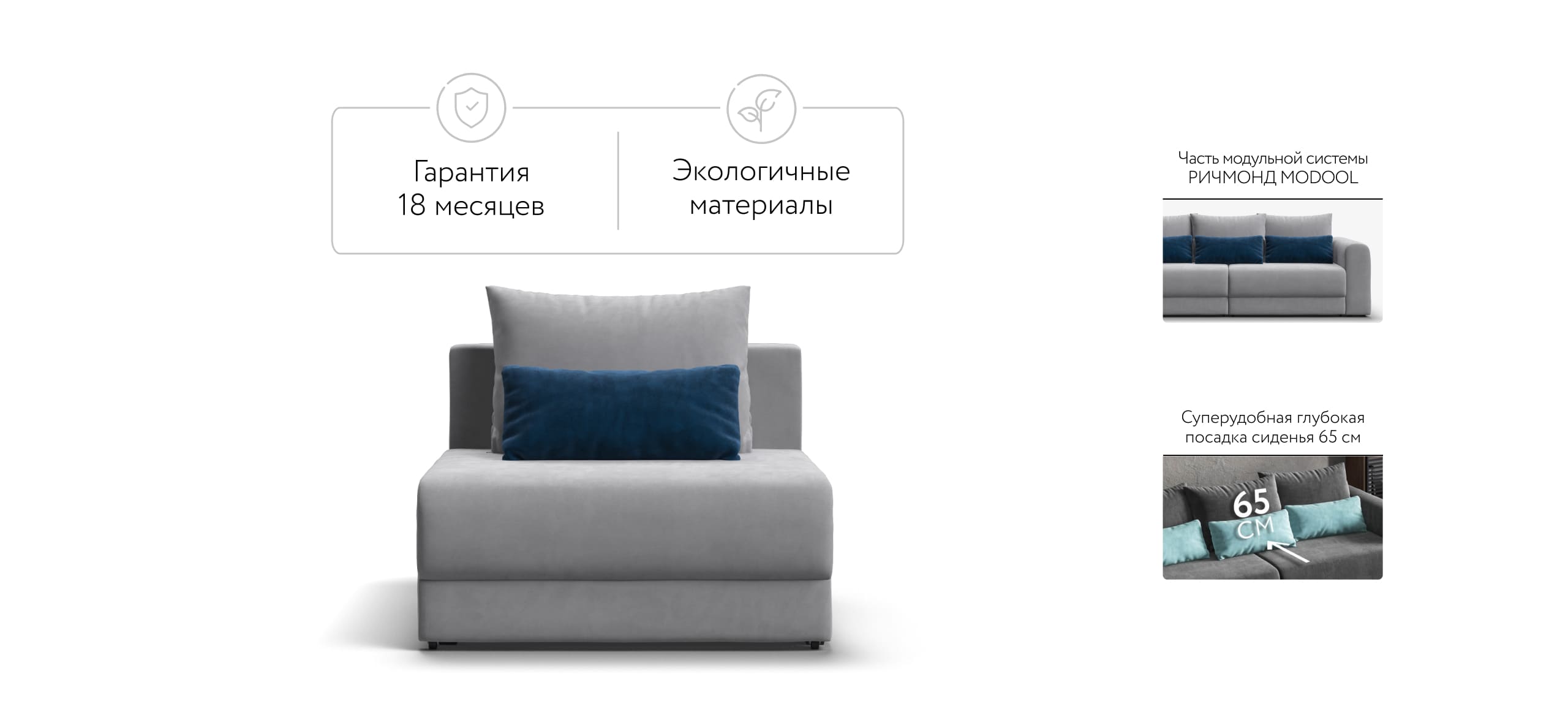 РИЧМОНД MODOOL – Модульная система для комфортного отдыха. Суперудобная глубокая посадка и высокоэластичная пена с дополнительным слоем PERIOTEK создадут максимальный комфорт во время отдыха.