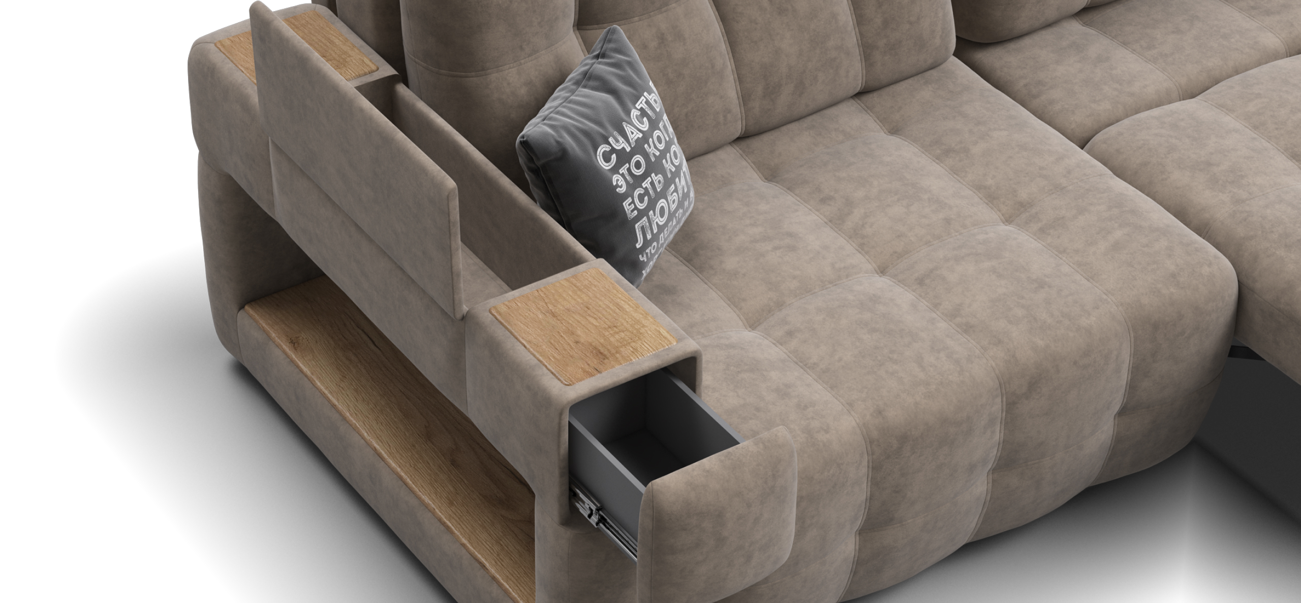 Функциональные подлокотники B-HAPPY: ящики и ниши для хранения, ваши вещи всегда на своем месте.