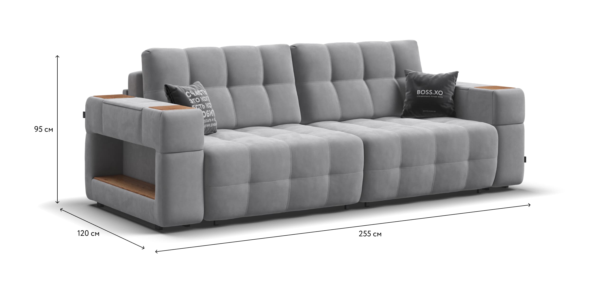 Диван BOSS.XO велюр Monolit сталь / WOOD Smok
