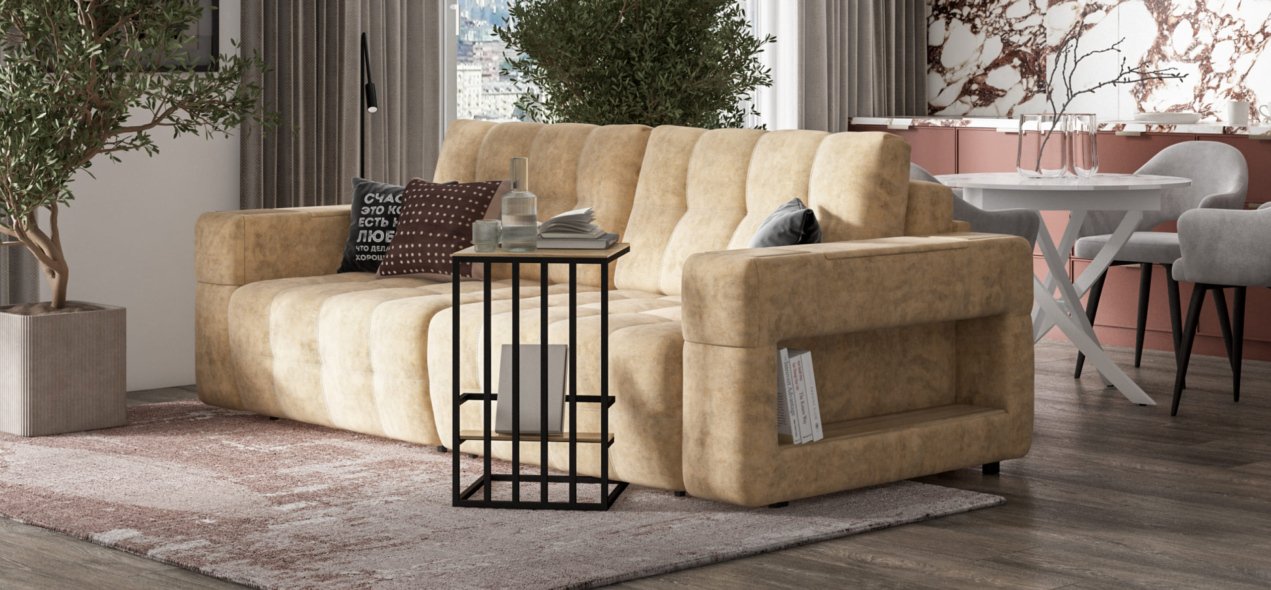 Диван BOSS.XO Велюр Royal шампань / WOOD Snow