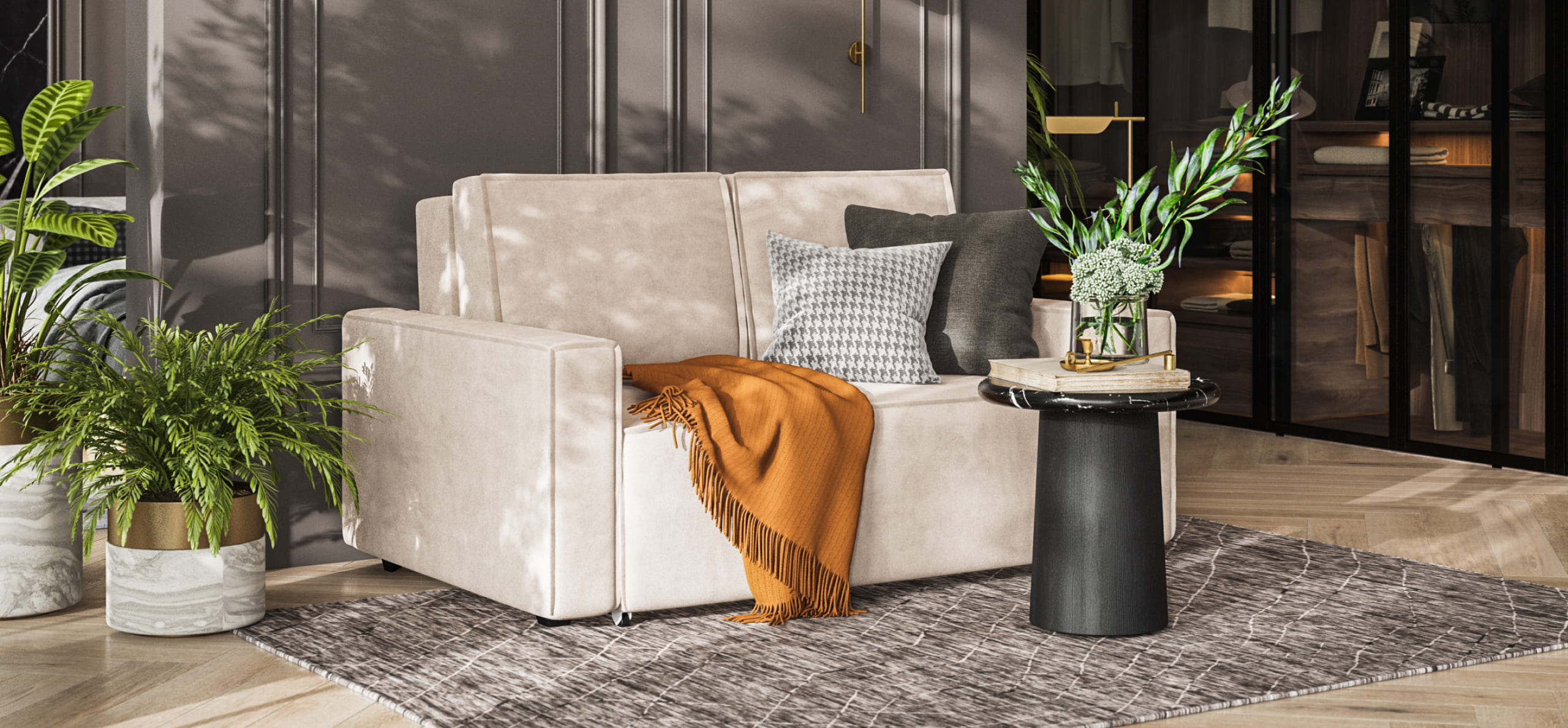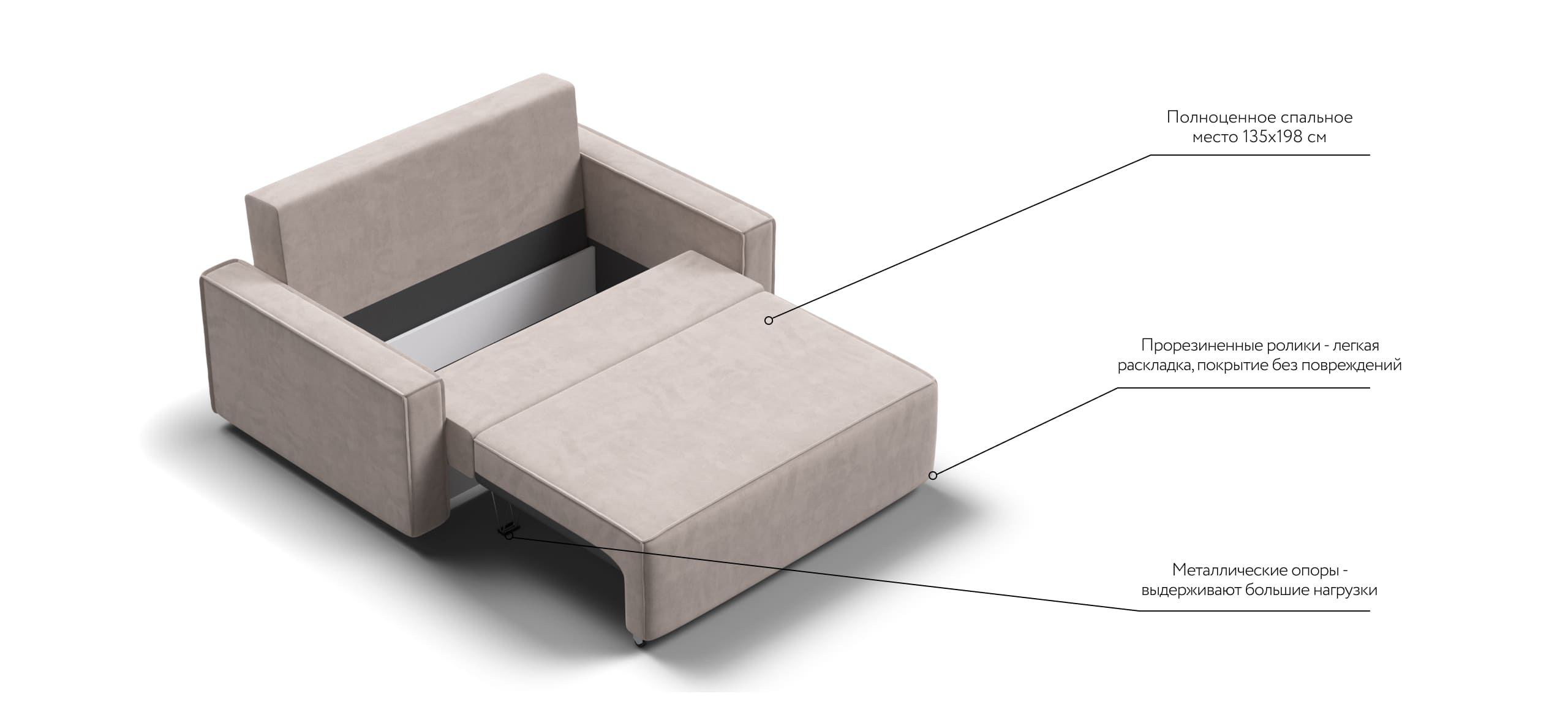 NORD Compact компактный диван с механизмом EASY ROLL. Несмотря на небольшие габариты, модель оснащена оптимальным спальным местом, на котором могут с комфортом разместиться 2 человека. Мягкие подлокотники, строгая симметрия и минималистичная отделка идеально дополнит современный интерьер в стиле лофт.