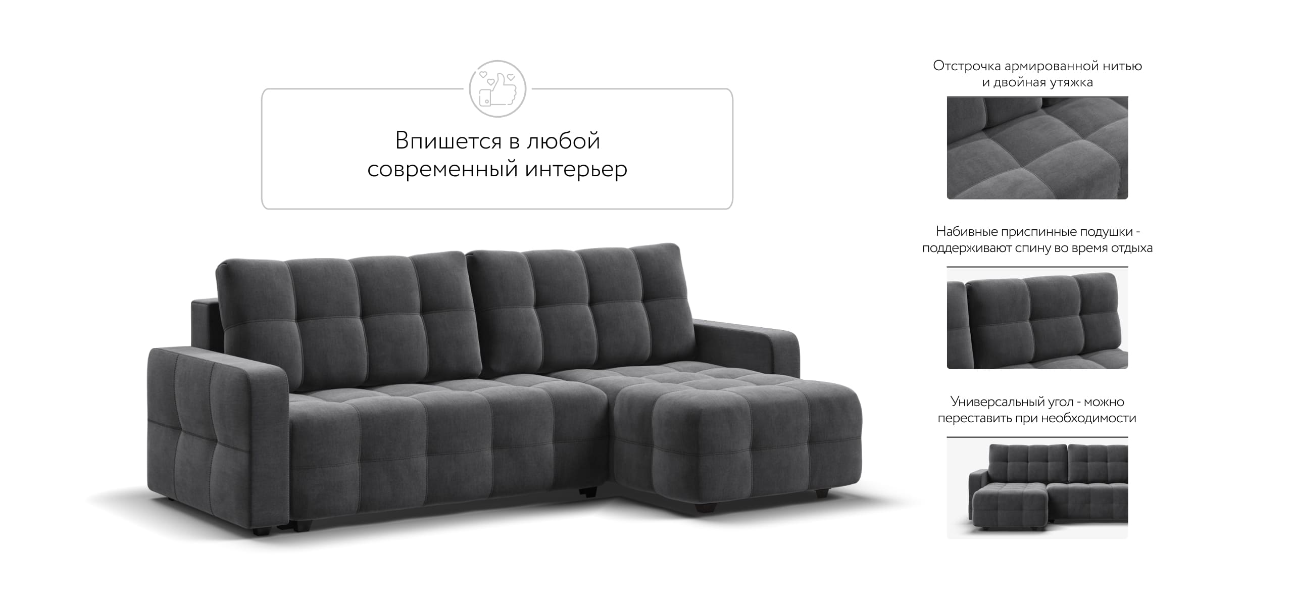 Угловой диван Dandy Euro - с ним так легко создать настоящий уют и домашний комфорт. Мягкие приспинные подушки и независимый пружинный блок в основании обеспечат максимальный комфорт во время отдыха.