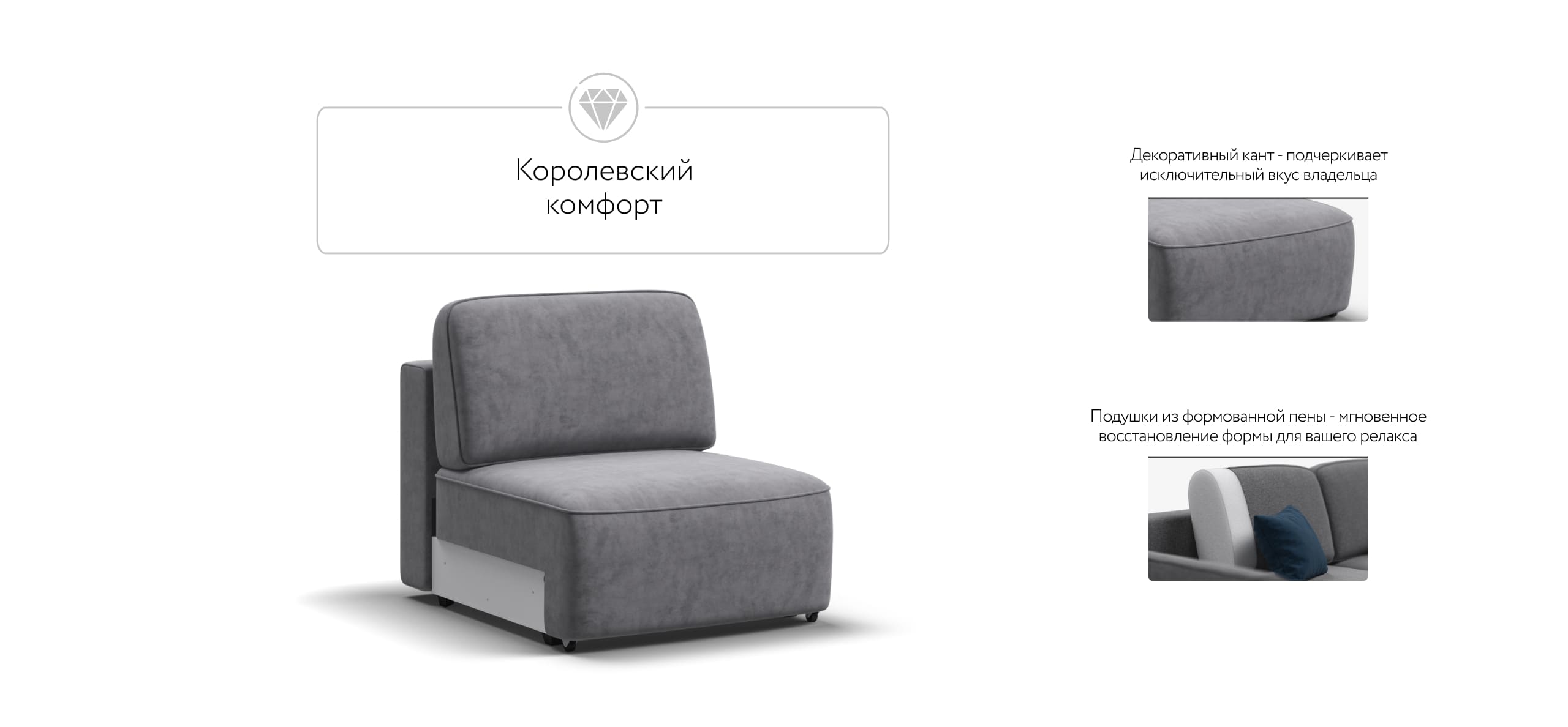 Спальное место KING MODOOL является частью модульной системы. Суперудобная глубокая посадка сиденья и высокоэластичная пена ELASTIC Foam с дополнительным слоем PERIOTEK создадут максимальный комфорт во время отдыха.