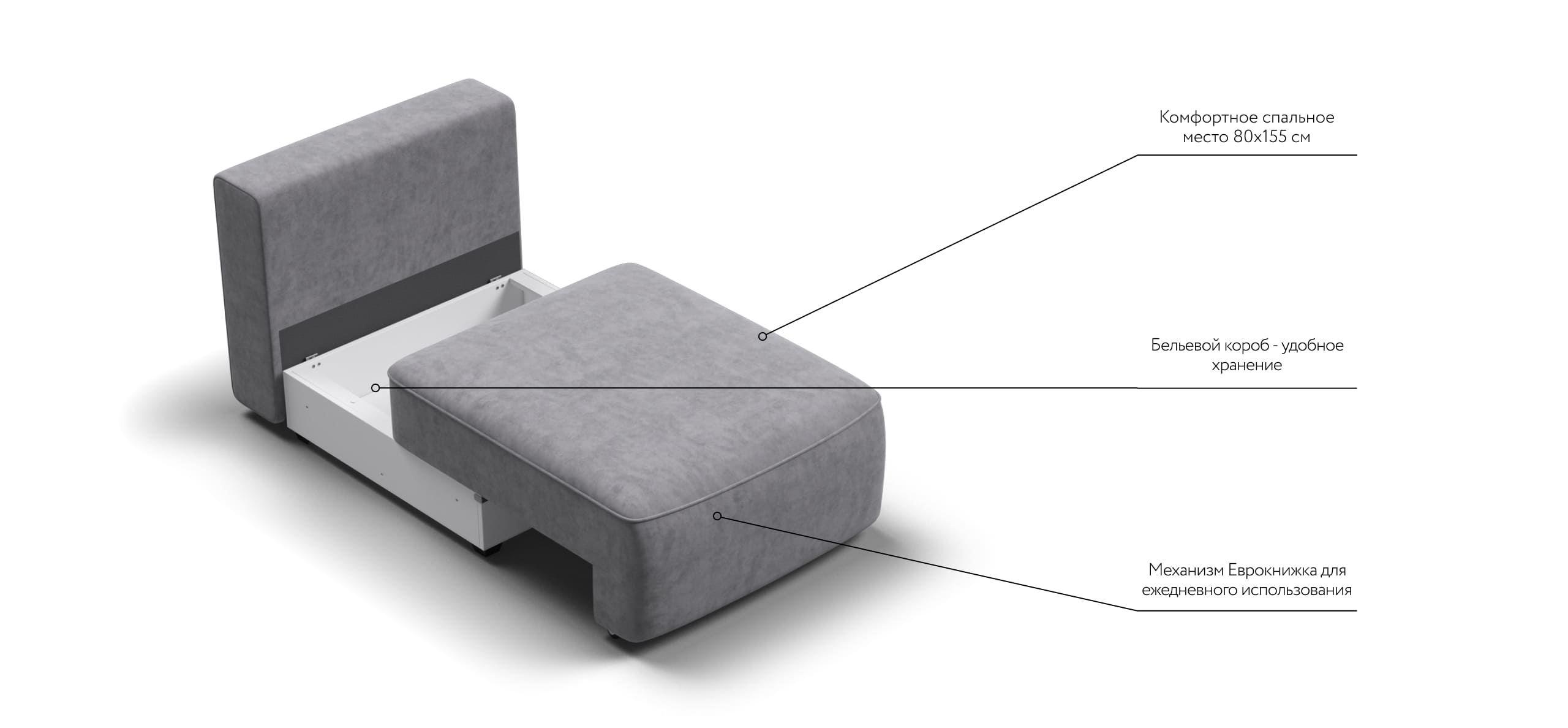 Благодаря простому и надежному механизму еврокнижка модульная система с легкостью превратится в комфортное спальное место.