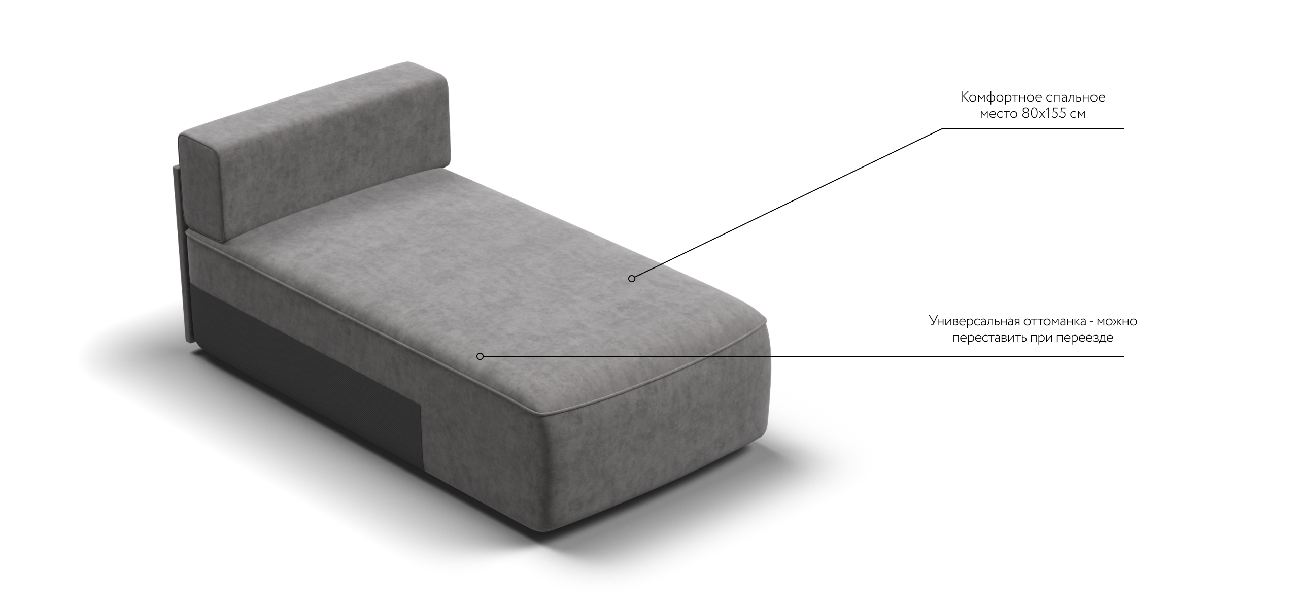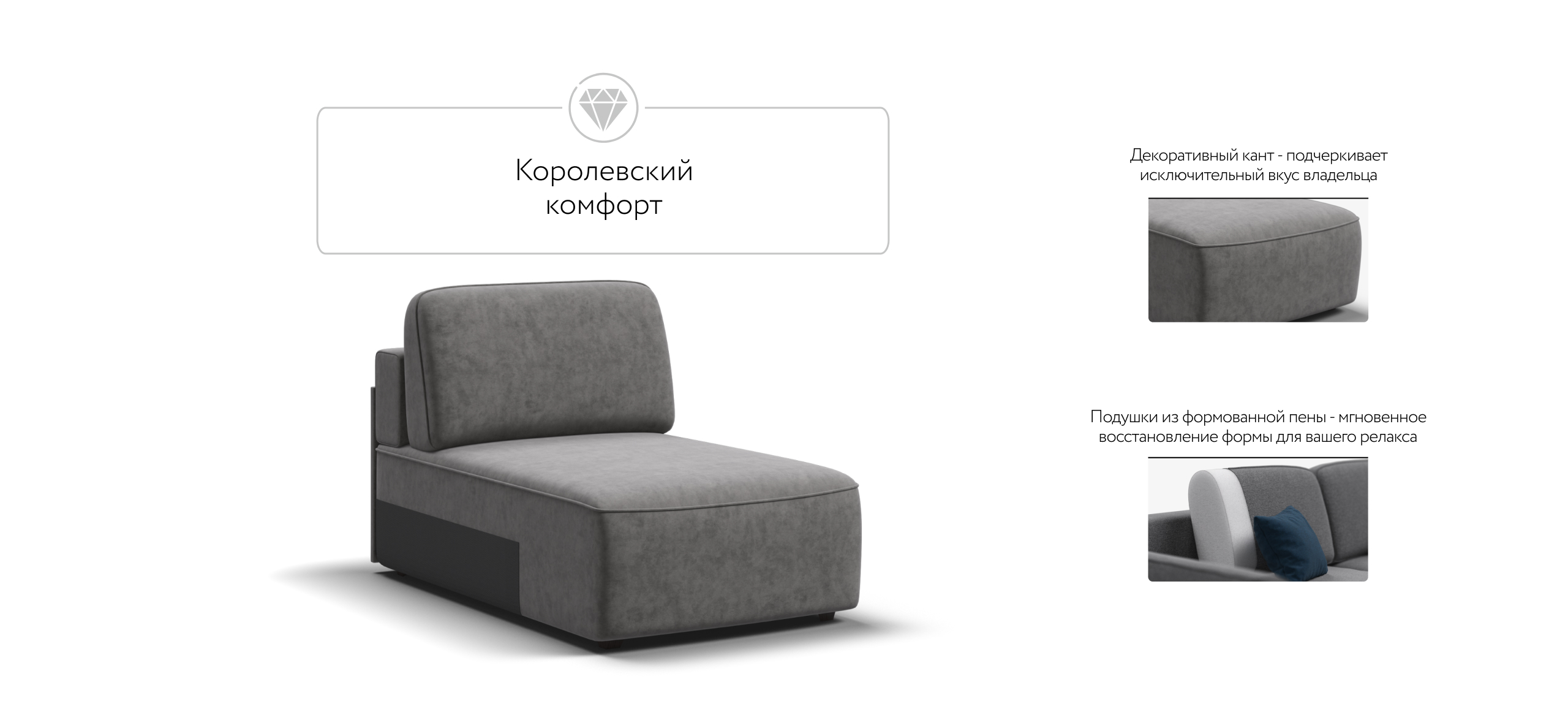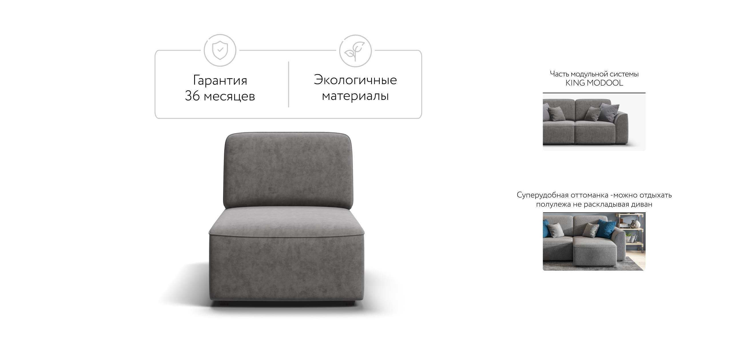 Оттоманка KING MODOOL является частью модульной системы. Оттоманка универсальная и может быть установлена с любой стороны модульной системы. Мягкие подушки из формованной пены и высокоэластичная пена ELASTIC Foam с дополнительным слоем PERIOTEK создадут максимальный комфорт во время отдыха. Благодаря глубокой посадке шезлонга 110см, можно отдыхать полулежа не раскладывая диван