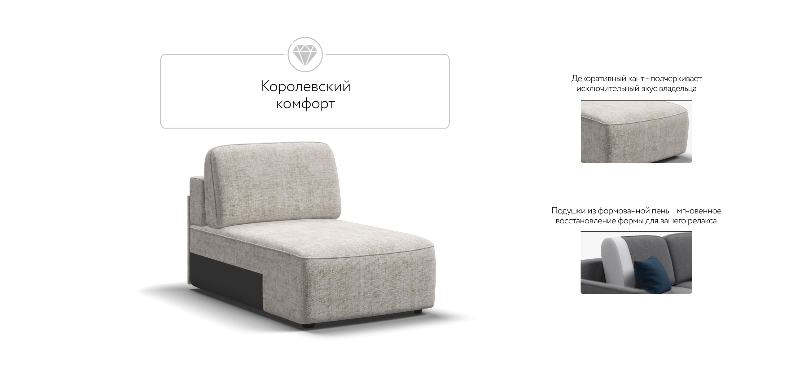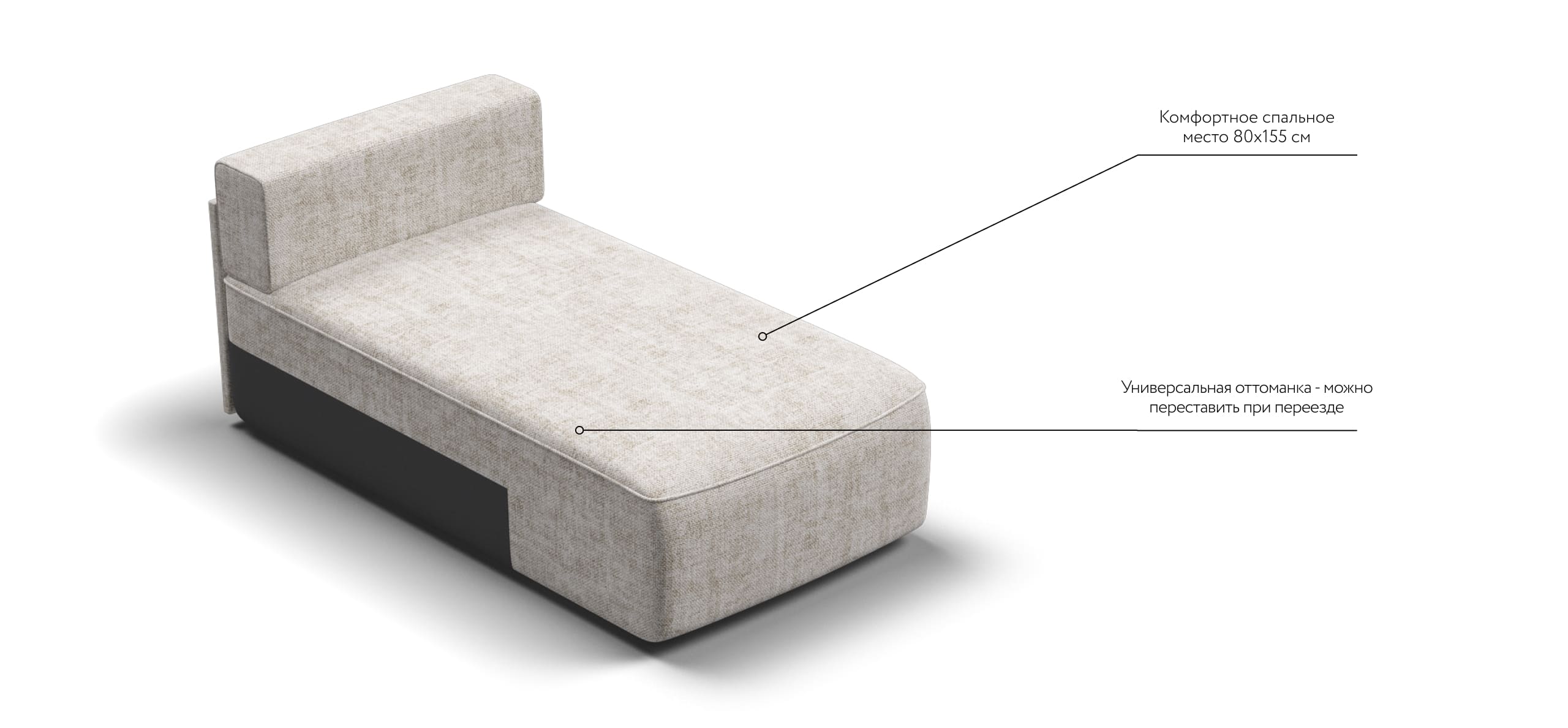 Оттоманка KING MODOOL является частью модульной системы. Оттоманка универсальная и может быть установлена с любой стороны модульной системы. Мягкие подушки из формованной пены и высокоэластичная пена ELASTIC Foam с дополнительным слоем PERIOTEK создадут максимальный комфорт во время отдыха. Благодаря глубокой посадке шезлонга 110см, можно отдыхать полулежа не раскладывая диван