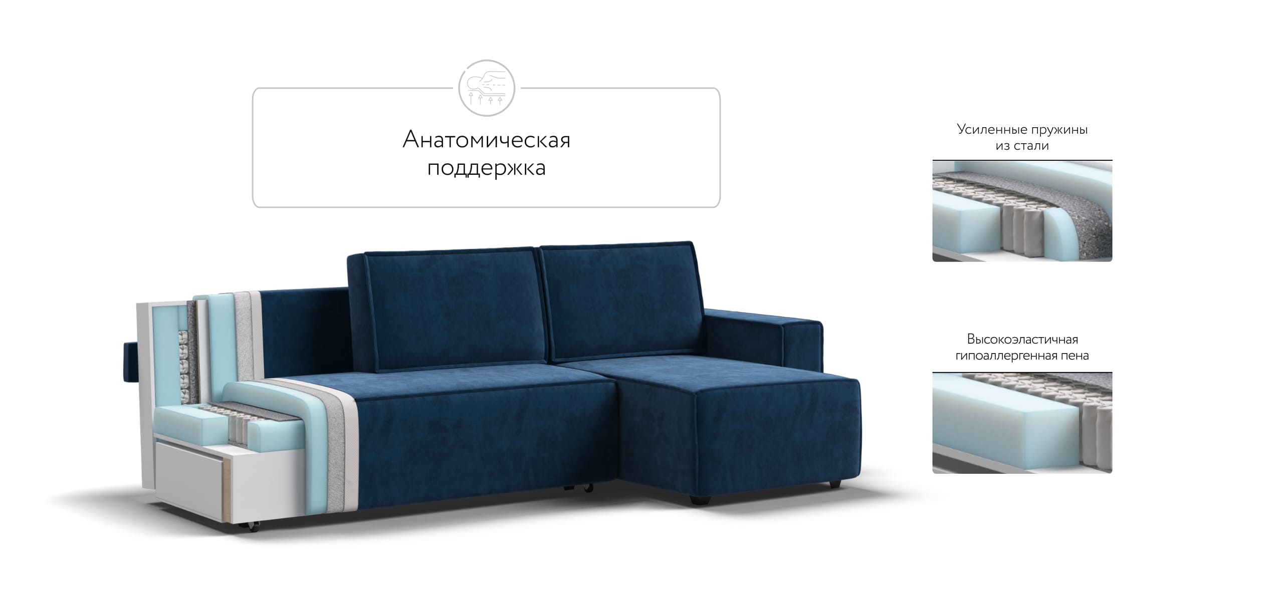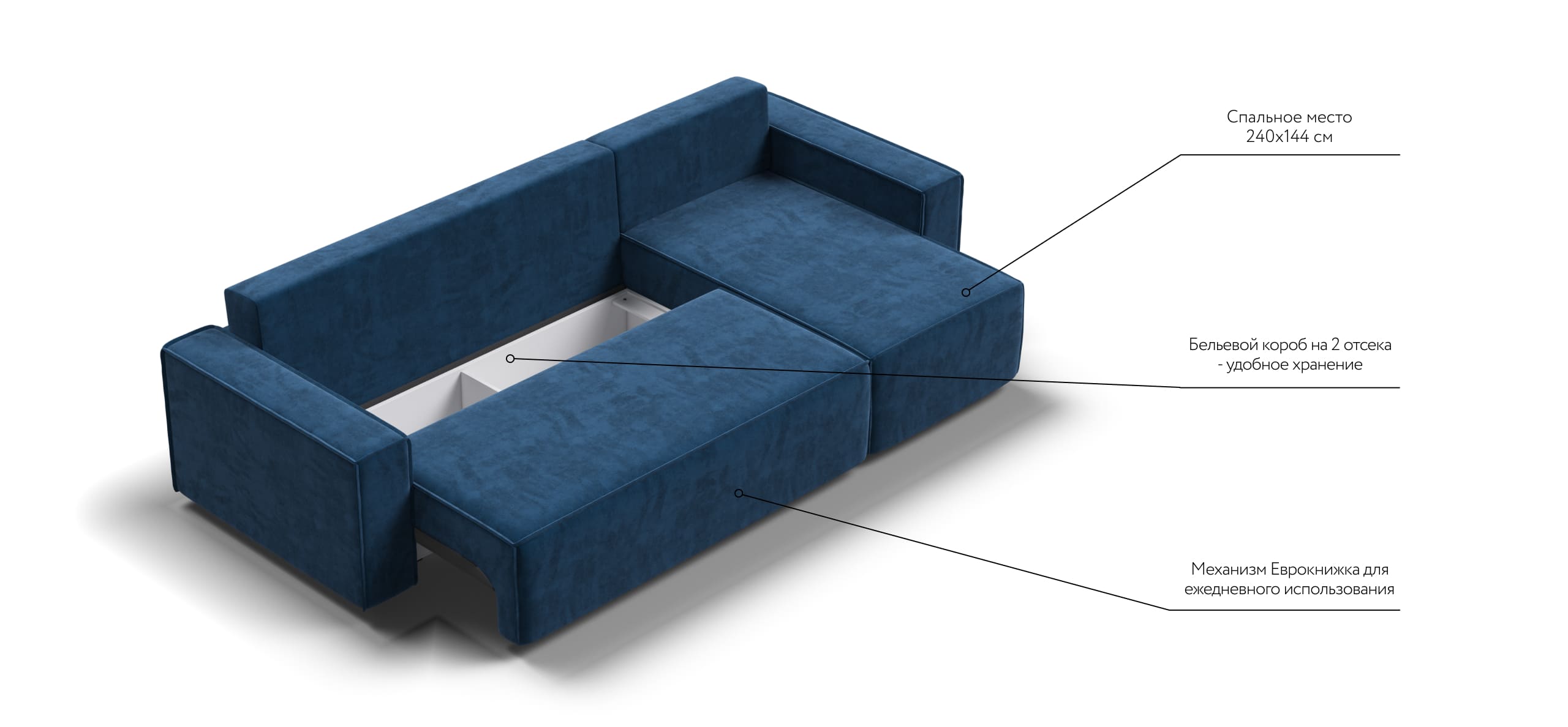Угловой диван NORD 2.0 с мягкими широкими подлокотниками, строгой симметрией и минималистичной отделкой идеально дополнит современный интерьер в стиле лофт. Днем Вы с комфортом сможете провести время за просмотром любимого фильма, а ночью трансформировать диван в полноценное спальное место, благодаря анатомическому матрасу и надежному механизму еврокнижка. Диван имеет дизайн 360, что позволит расположить его в любой части гостиной. Универсальный угол позволит Вам самостоятельно определить положение угла при сборке.