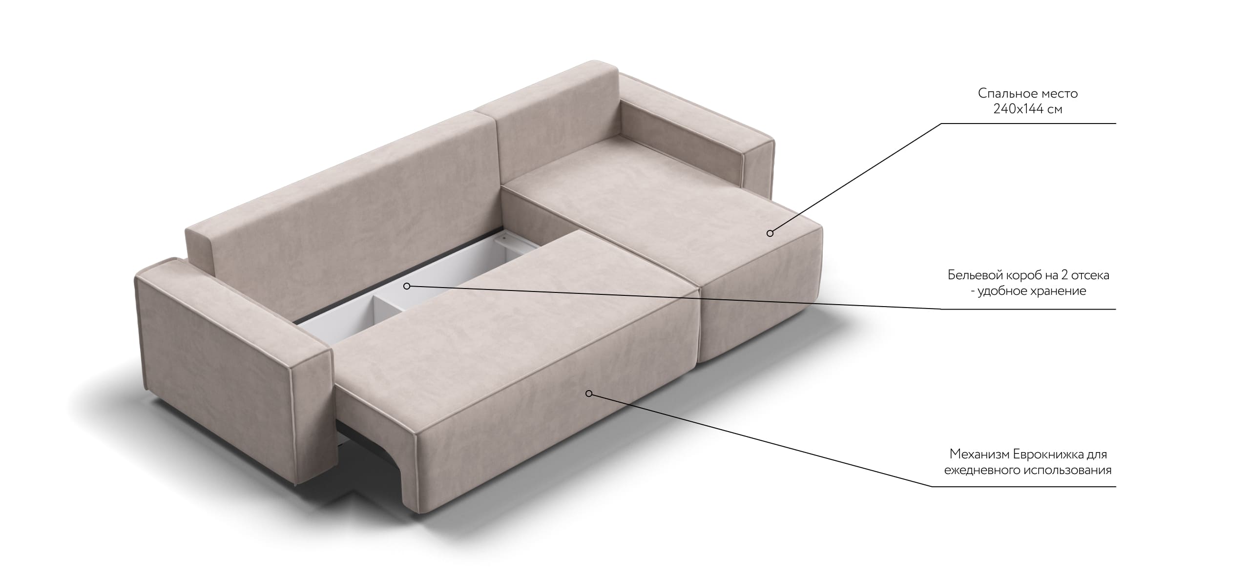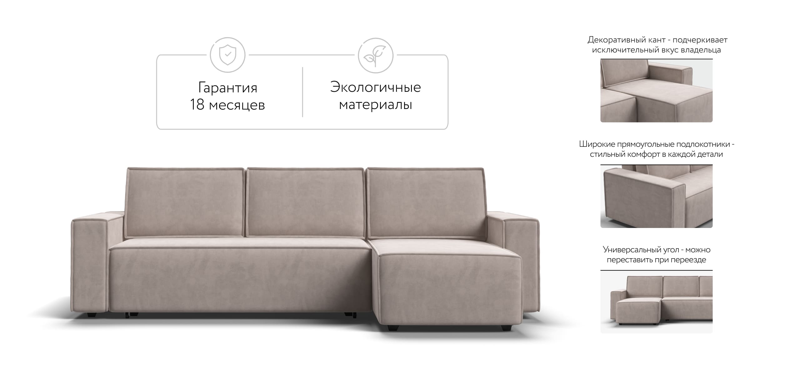 Угловой диван NORD 2.0 с мягкими широкими подлокотниками, строгой симметрией и минималистичной отделкой идеально дополнит современный интерьер в стиле лофт. Днем Вы с комфортом сможете провести время за просмотром любимого фильма, а ночью трансформировать диван в полноценное спальное место, благодаря анатомическому матрасу и надежному механизму еврокнижка. Диван имеет дизайн 360, что позволит расположить его в любой части гостиной. Универсальный угол позволит Вам самостоятельно определить положение угла при сборке.