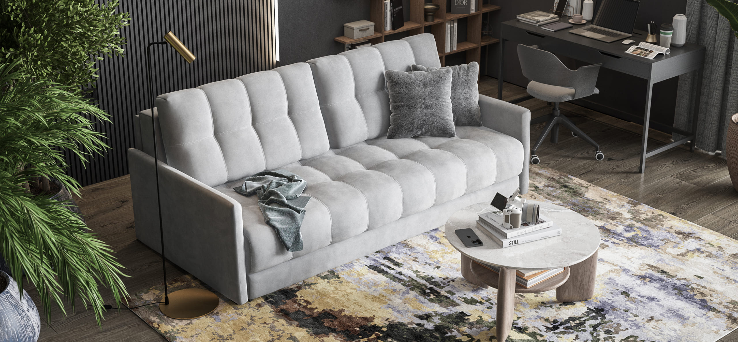 Благодаря дополнительному пуфу, который Вы можете приобрести к нему отдельно, прямой диван с легкостью становится полноценным угловым диваном.