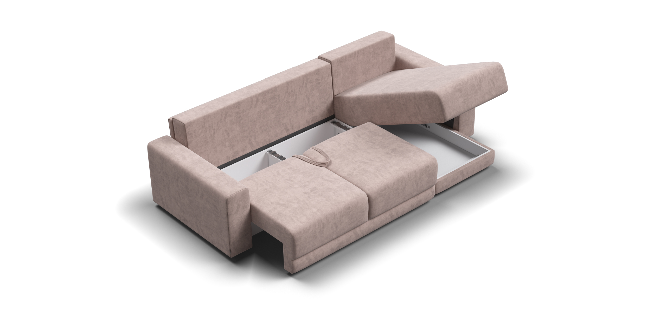 Бельевой короб на 175 л под посадочной частью и дополнительный в оттоманке на 118 л - удобное и безопасное хранение постельного белья