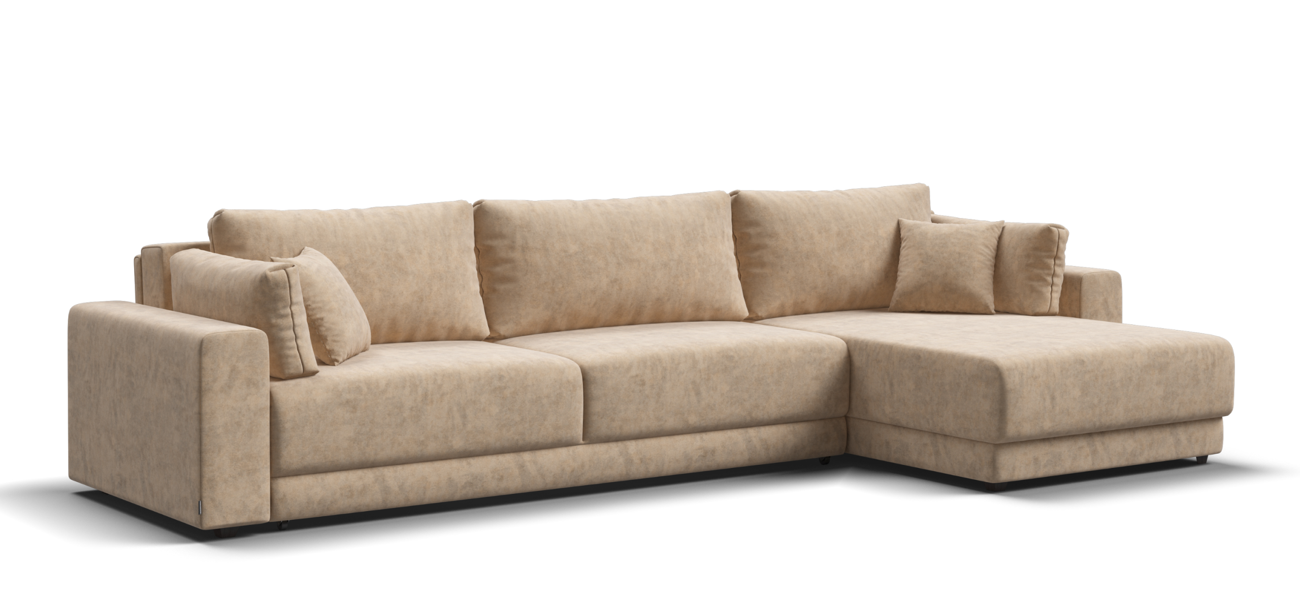 Угловой диван Босс Прайм Макс - это сочетание современного дизайна и продуманной эргономики, создающее уютную атмосферу в любом интерьере. Визуально разделённое сиденье, широкие мягкие подлокотники и пышные подушки разного размера обеспечивают не только эстетическую привлекательность, но и максимальный комфорт.​