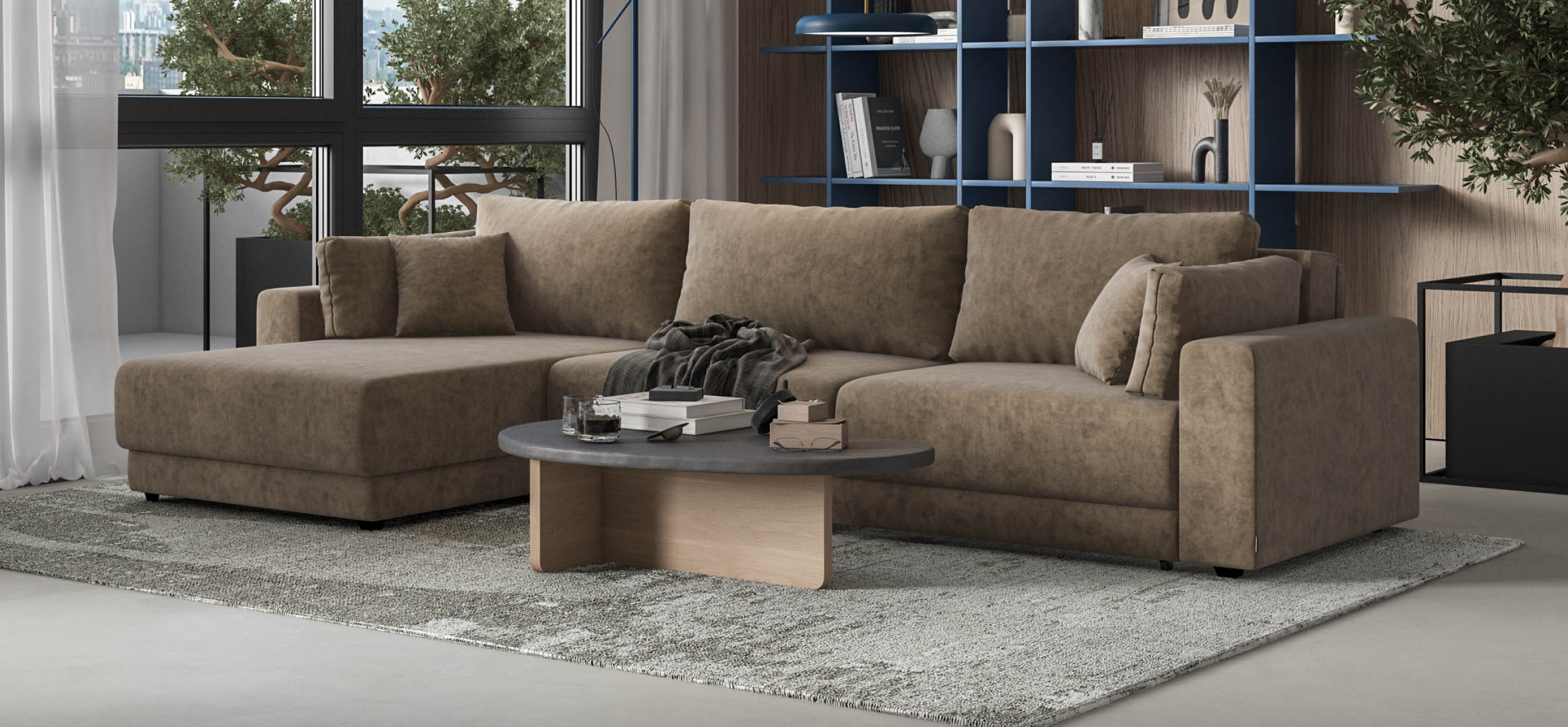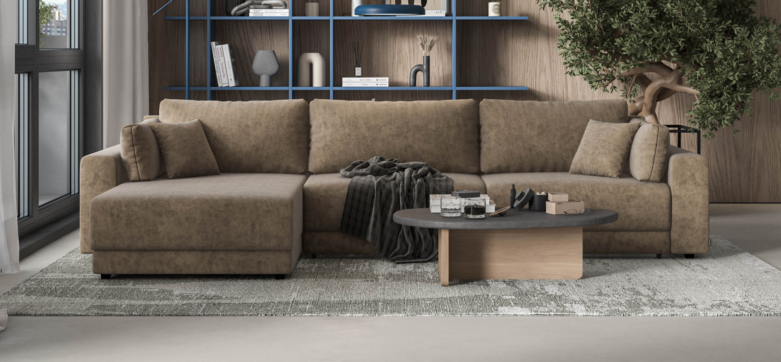 Угловой диван Босс Прайм Макс - это сочетание современного дизайна и продуманной эргономики, создающее уютную атмосферу в любом интерьере. Визуально разделённое сиденье, широкие мягкие подлокотники и пышные подушки разного размера обеспечивают не только эстетическую привлекательность, но и максимальный комфорт.