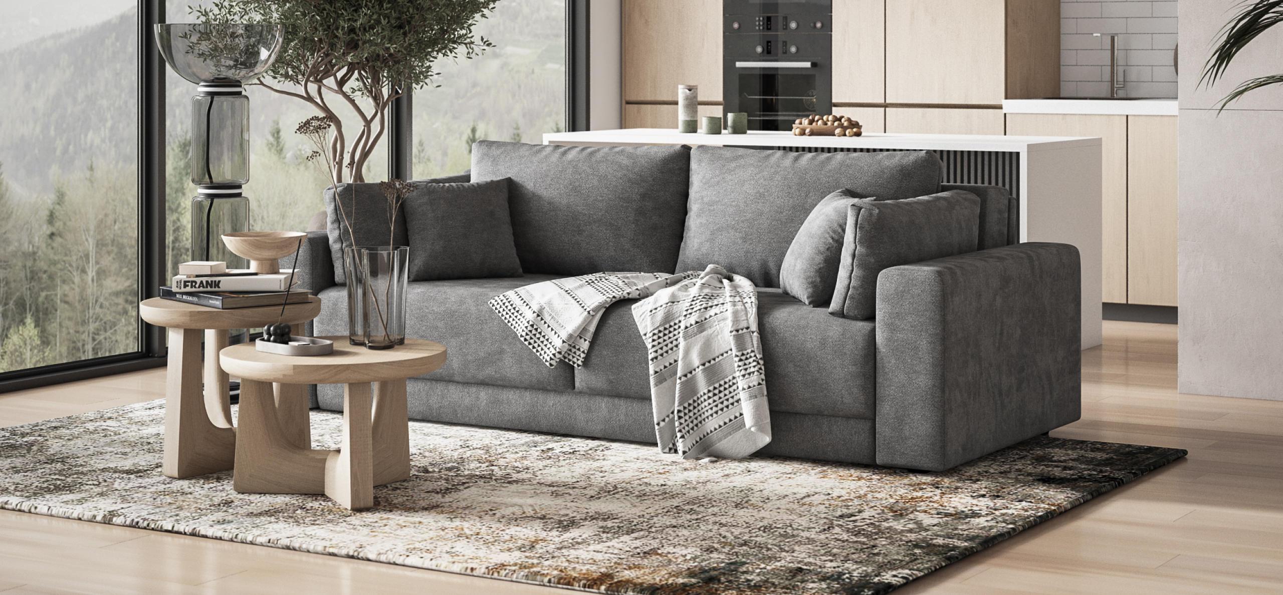Простой и надежный механизм еврокнижка позволяет ставить диван вплотную к стене