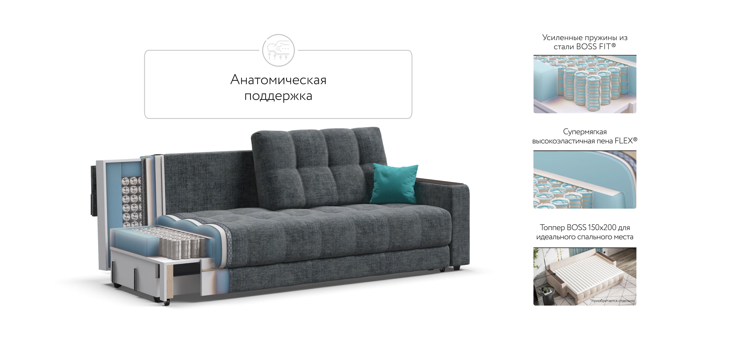 Стильный диван для тех, кто ищет максимальный комфорт. Продуманный до мелочей диван BOSS сочетает в себе надежный каркас, мягкие ткани, многофункциональность и быструю сборку за 1 минуту без инструментов - ощутите комфорт у себя дома!