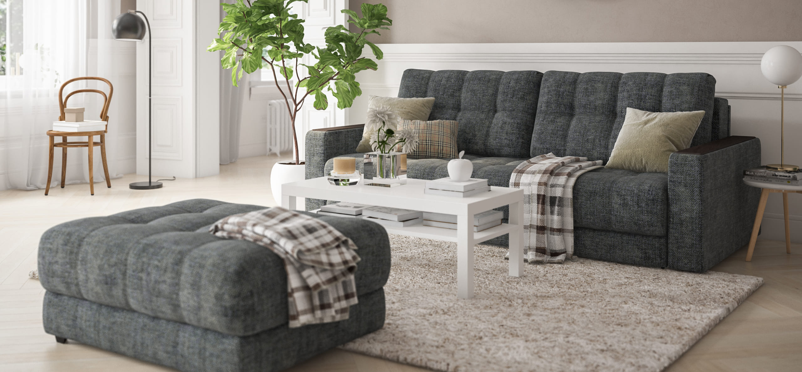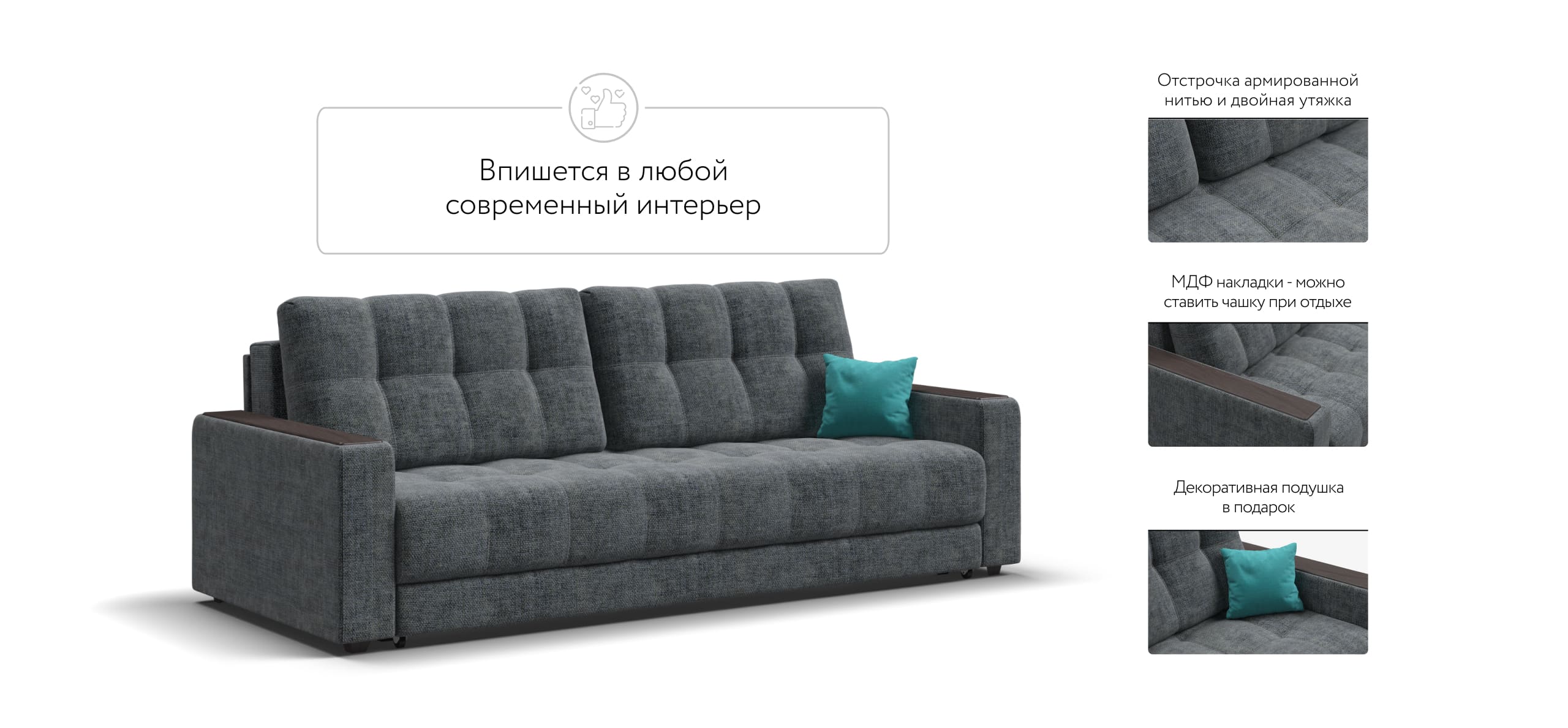 Благодаря дополнительному пуфу, который Вы можете приобрести к нему отдельно, прямой диван с легкостью становится полноценным угловым диваном.