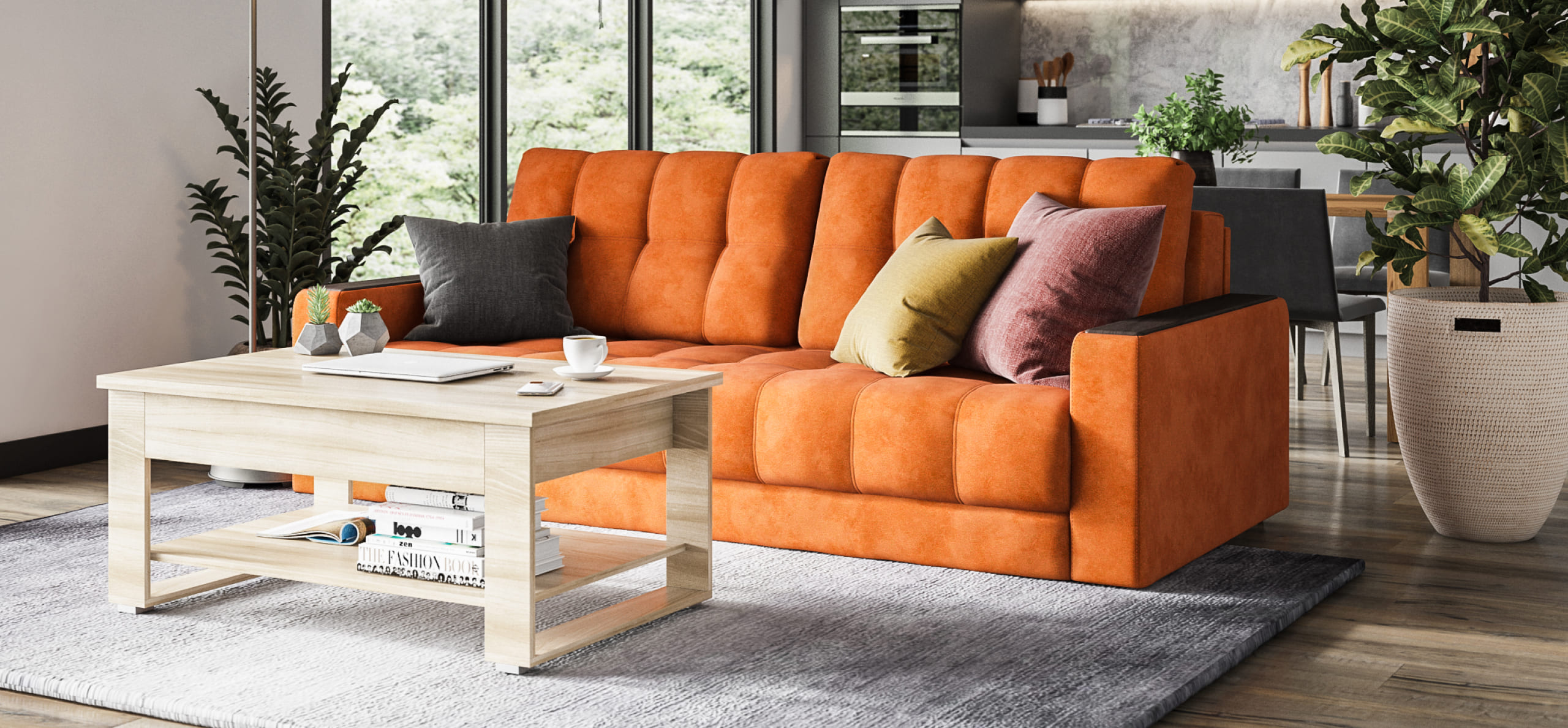 Благодаря дополнительному пуфу, который Вы можете приобрести к нему отдельно, прямой диван с легкостью становится полноценным угловым диваном.