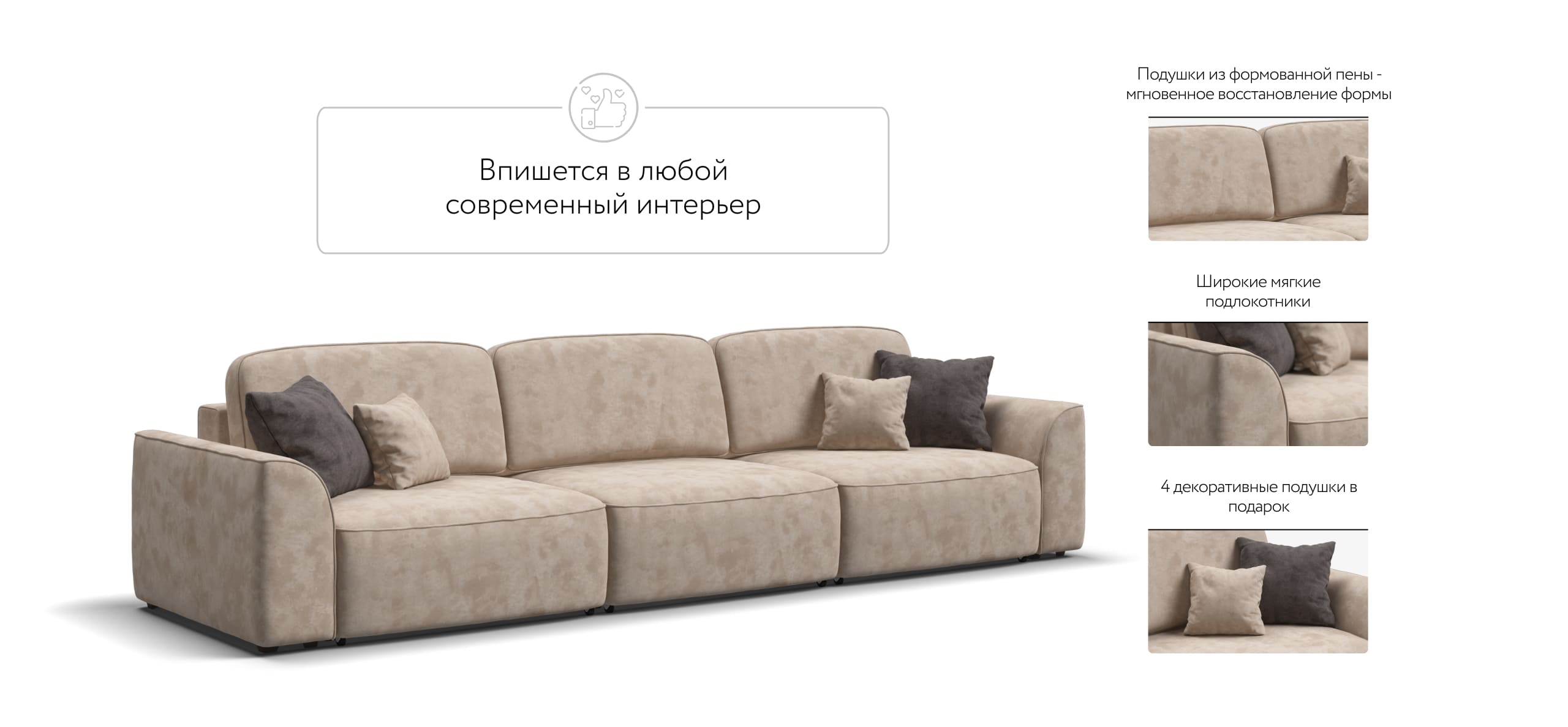 Комфортная посадка, скругленные линии, объемные подушки - диван, который наполнит ваш дом уютом и комфортом.