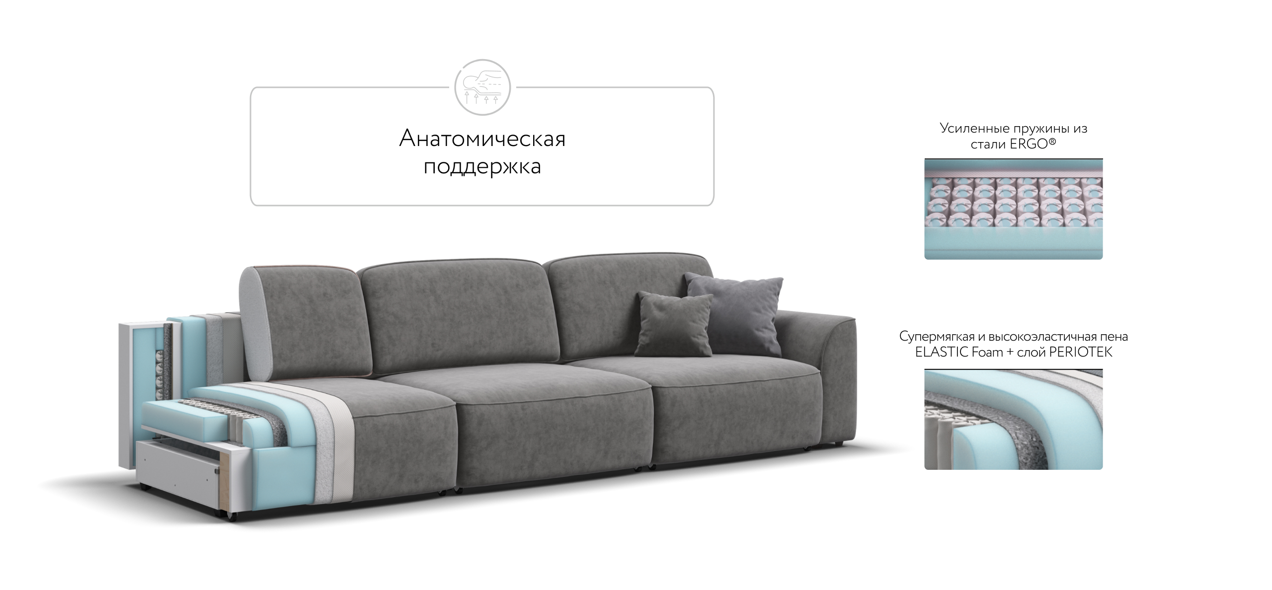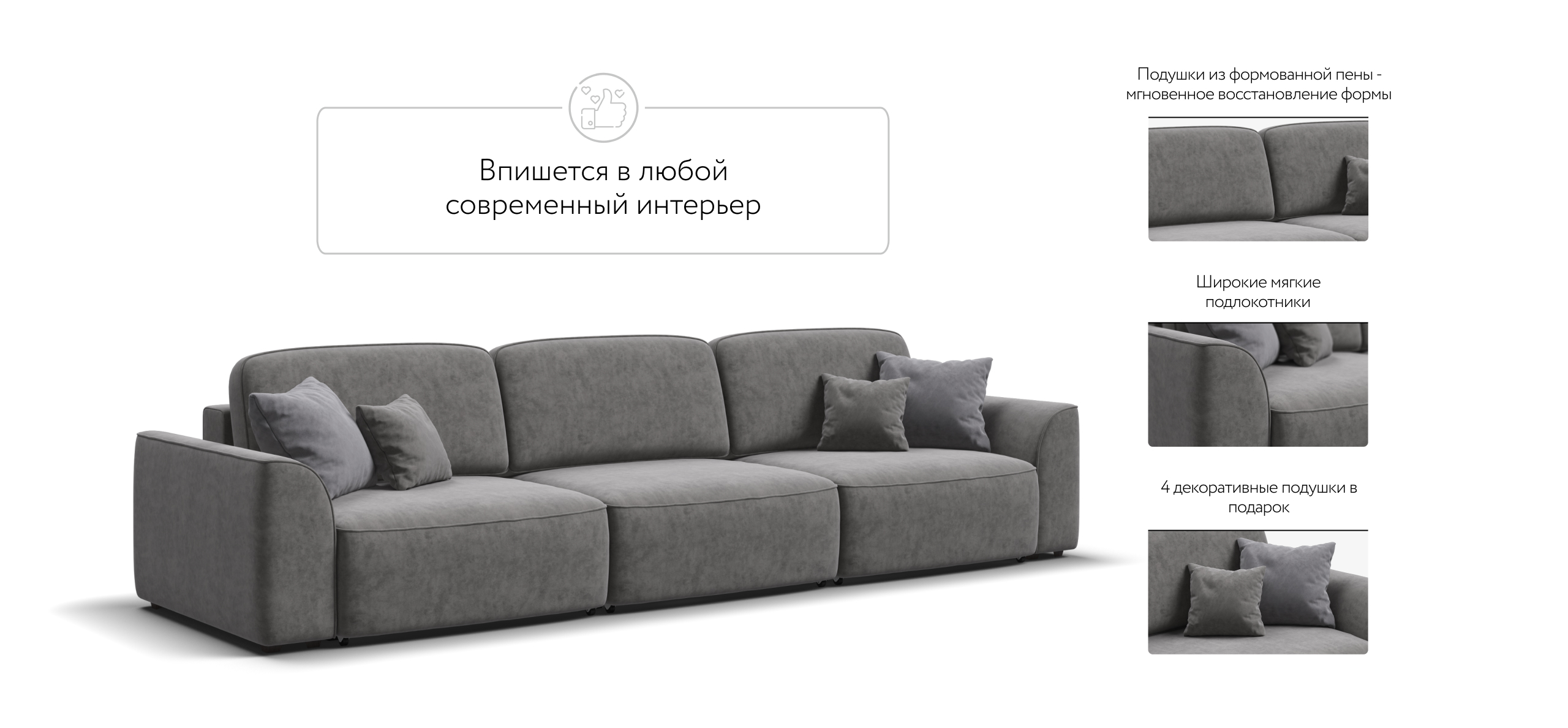 Комфортная посадка, скругленные линии, объемные подушки - диван, который наполнит ваш дом уютом и комфортом.