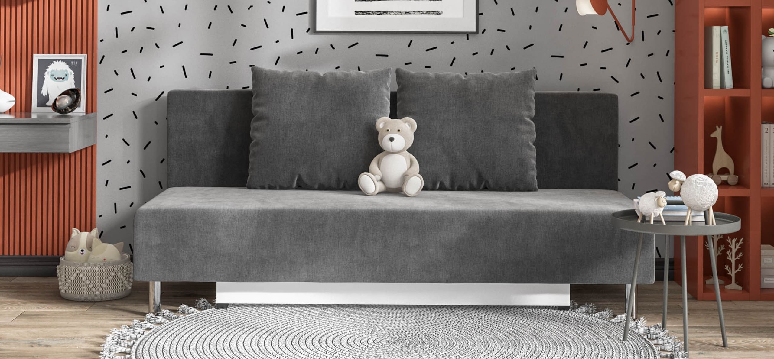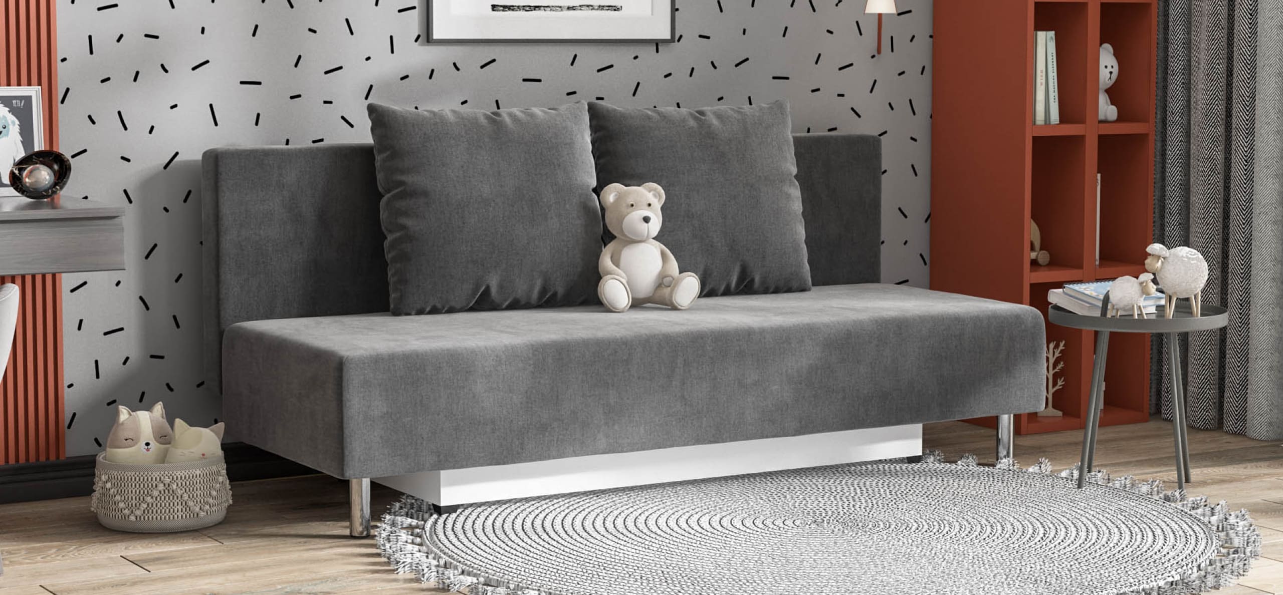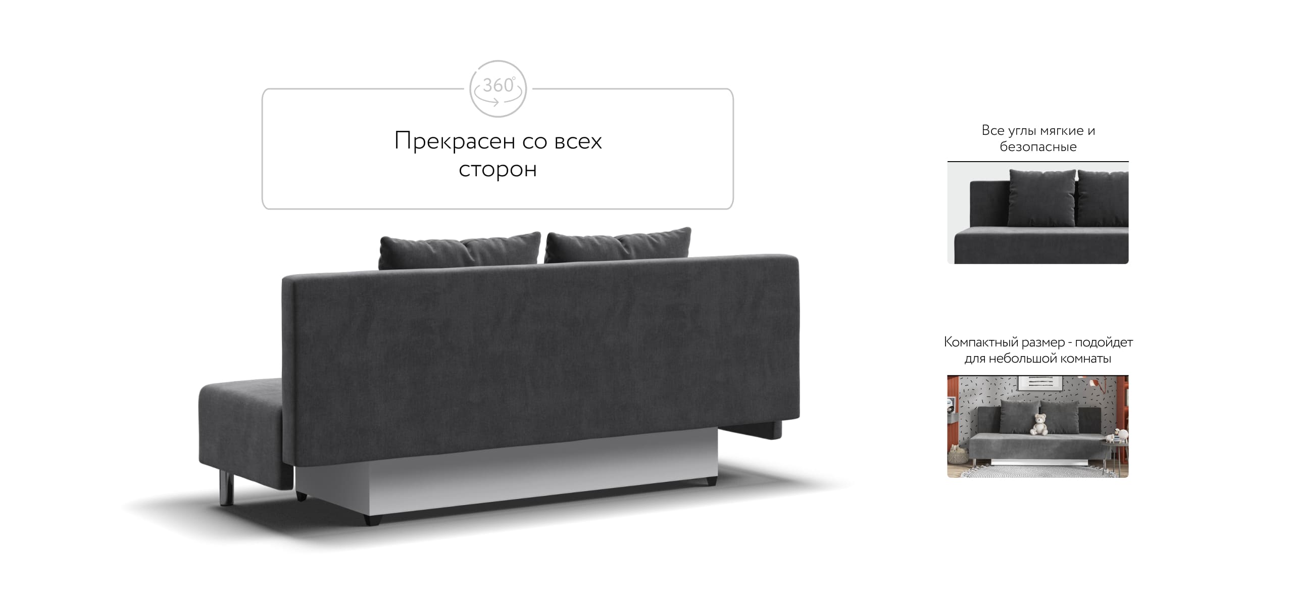 Надежный механизм еврокнижка и опоры на роликах сделают легким ежедневное использование дивана в качестве спального места и обезопасят от повреждения напольное покрытие. В основании дивана находятся два вместительных бельевых ящика.