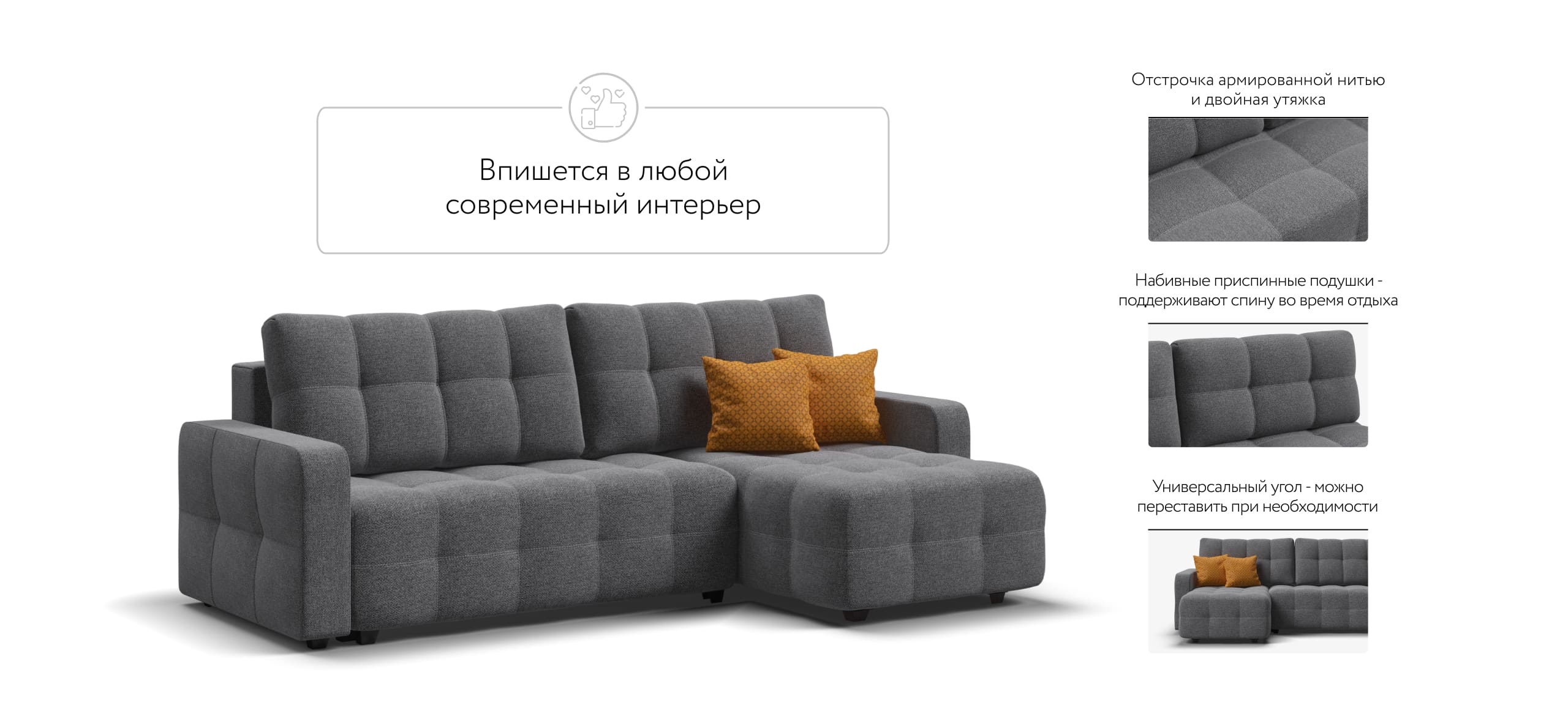 Угловой диван DANDY Euro SE Рогожка Malmo серый