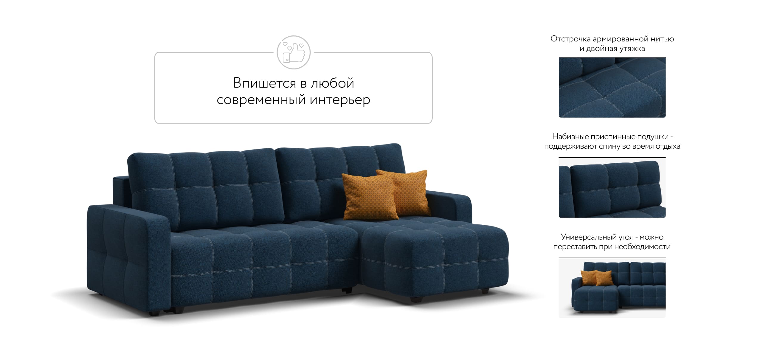 Угловой диван DANDY Euro SE Рогожка Malmo синий
