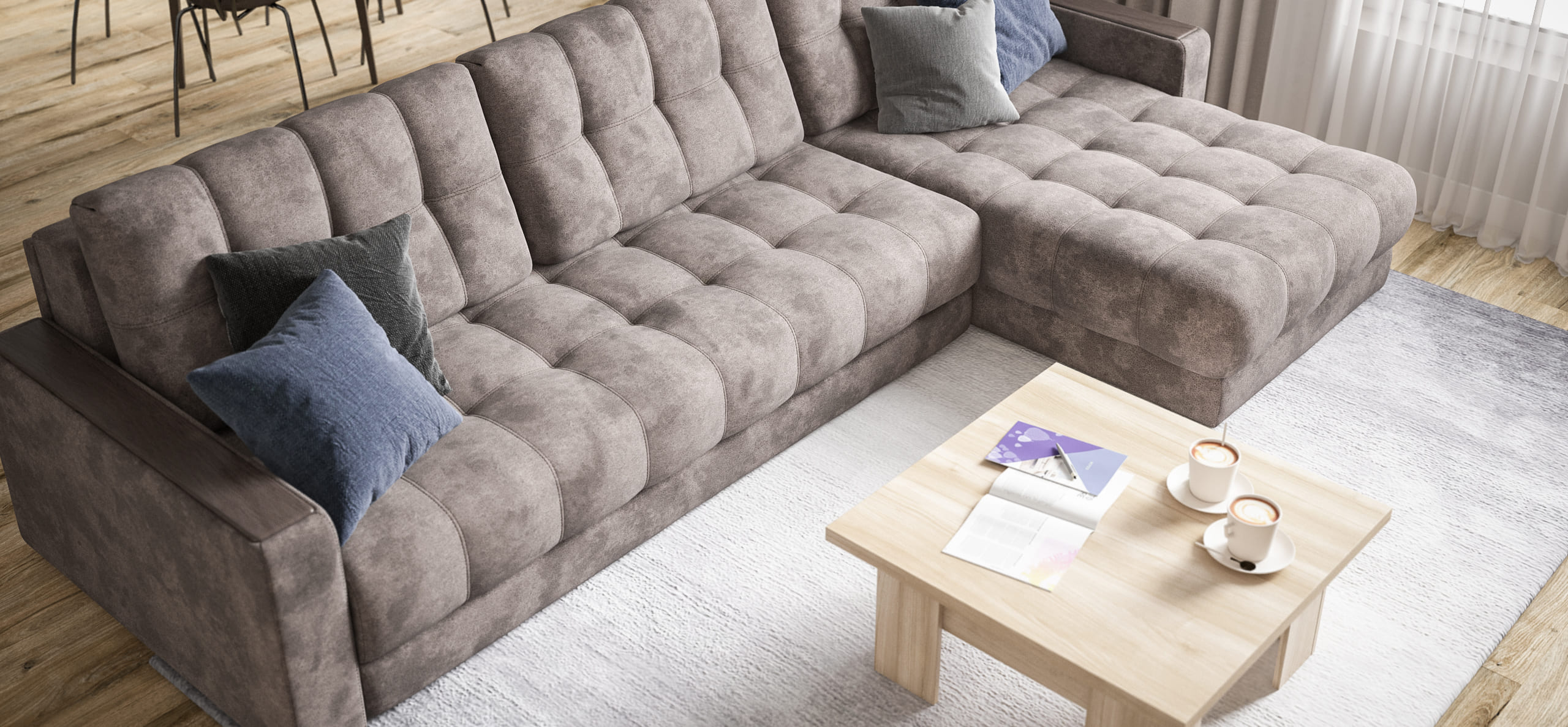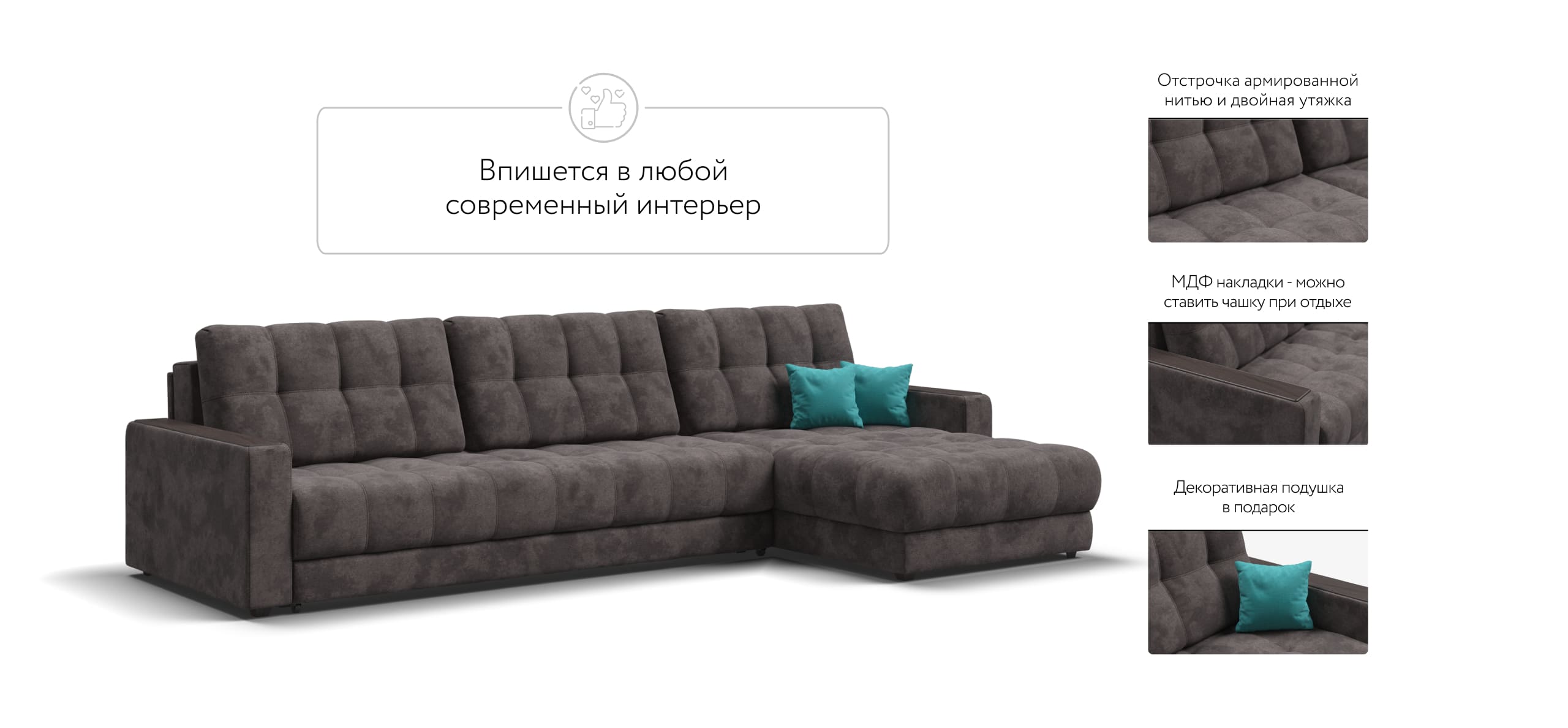 Угловой диван BOSS MAX - большой, стильный и комфортный диван, предназначенный для просторной комнаты.