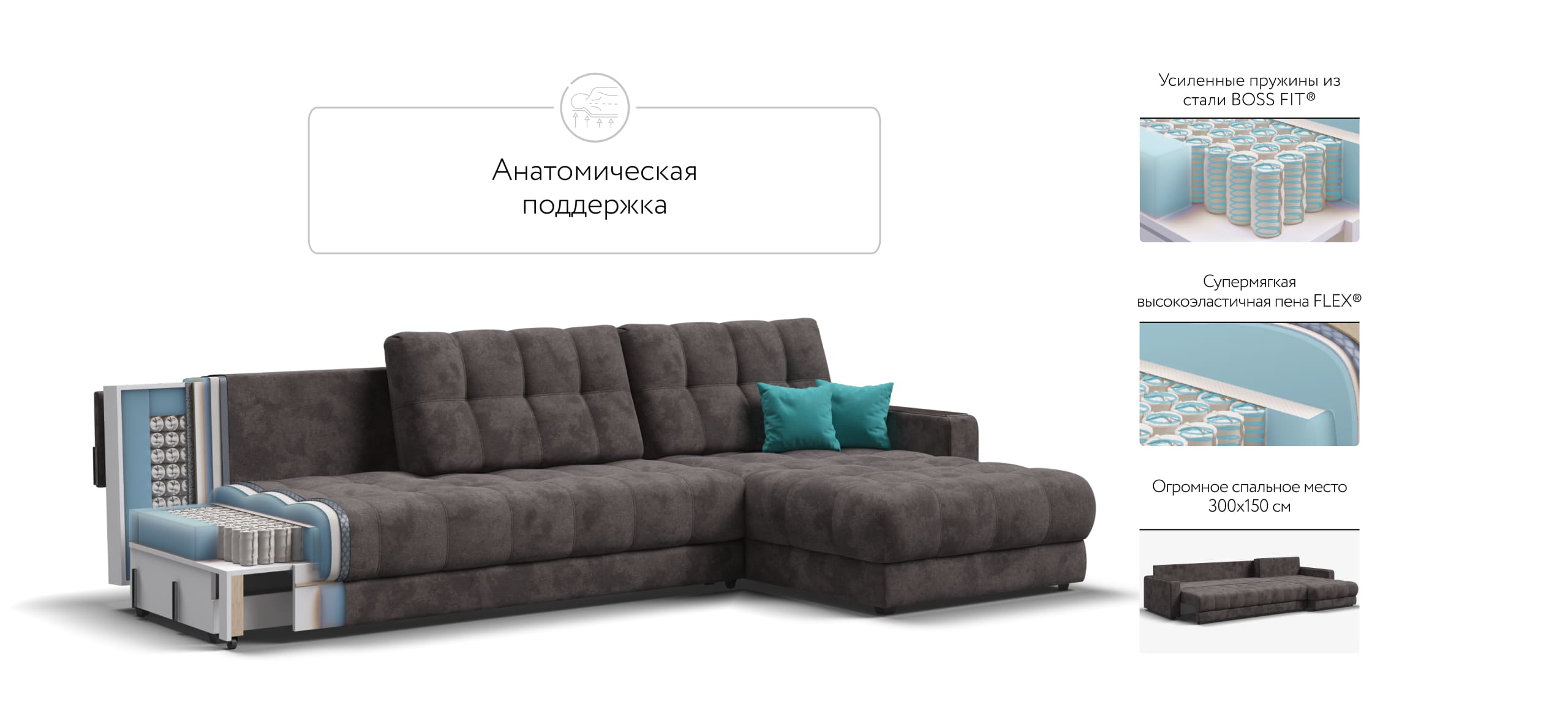 Продуманный до мелочей диван BOSS сочетает в себе надежный каркас, мягкие ткани, многофункциональность и быструю сборку за 1 минуту без инструментов - ощутите комфорт у себя дома!