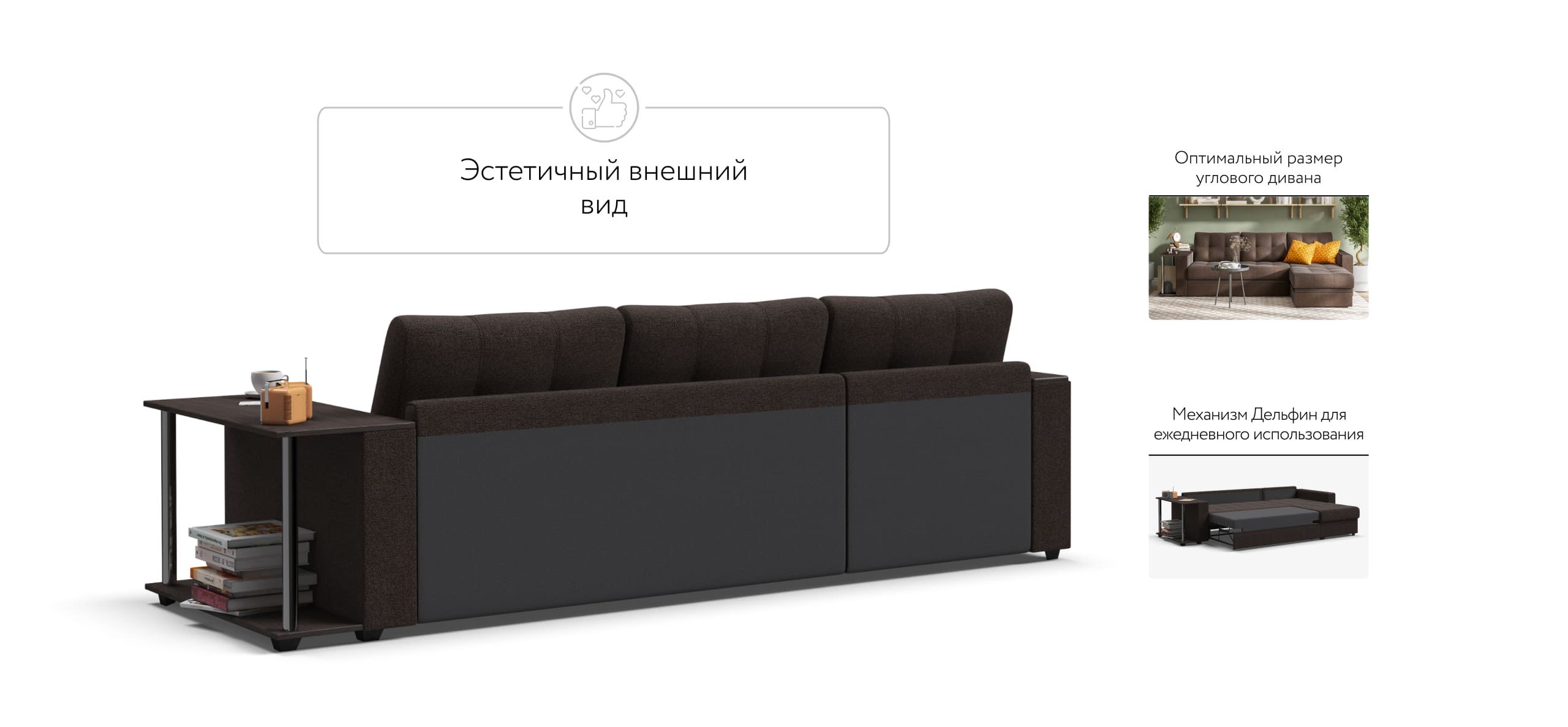 Угловой диван Атланта, благодаря своему элегантному и практичному дизайну, замечательно дополнит интерьер Вашей гостиной. Надежный и простой механизм трансформации Дельфин идеален для постоянного использования и выдерживает большие нагрузки.