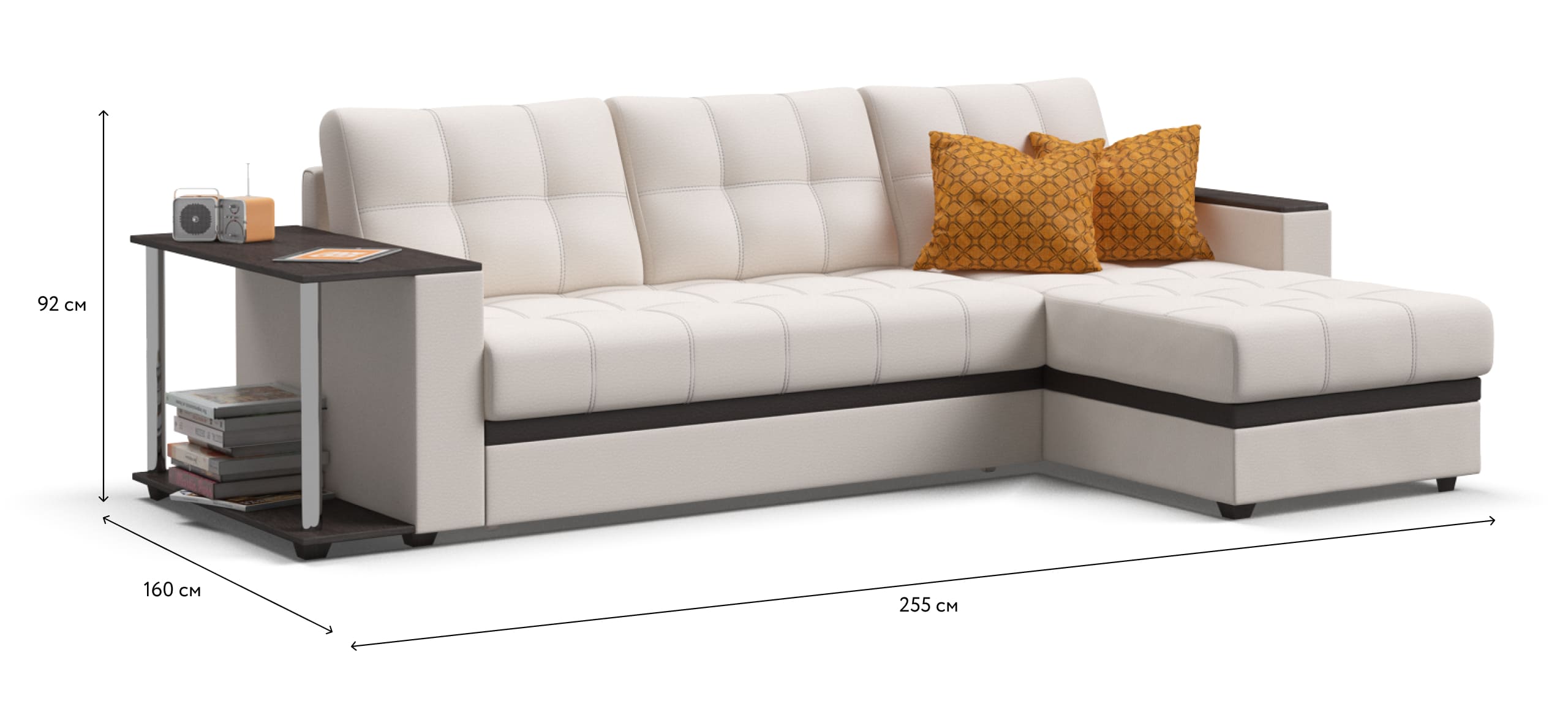 Угловой диван Атланта, благодаря своему элегантному и практичному дизайну, замечательно дополнит интерьер Вашей гостиной. Надежный и простой механизм трансформации дельфин идеален для постоянного использования и выдерживает большие нагрузки.