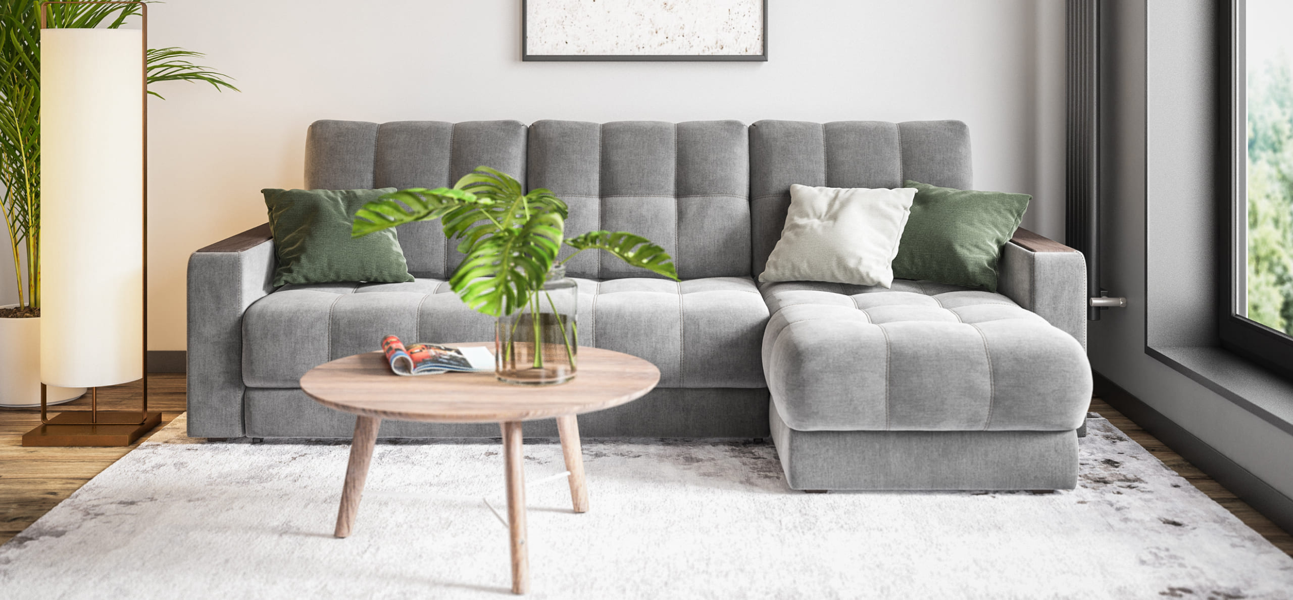 Угловой диван BOSS Classic XL - диван с подъемной оттоманкой и механизмом Еврокнижка.