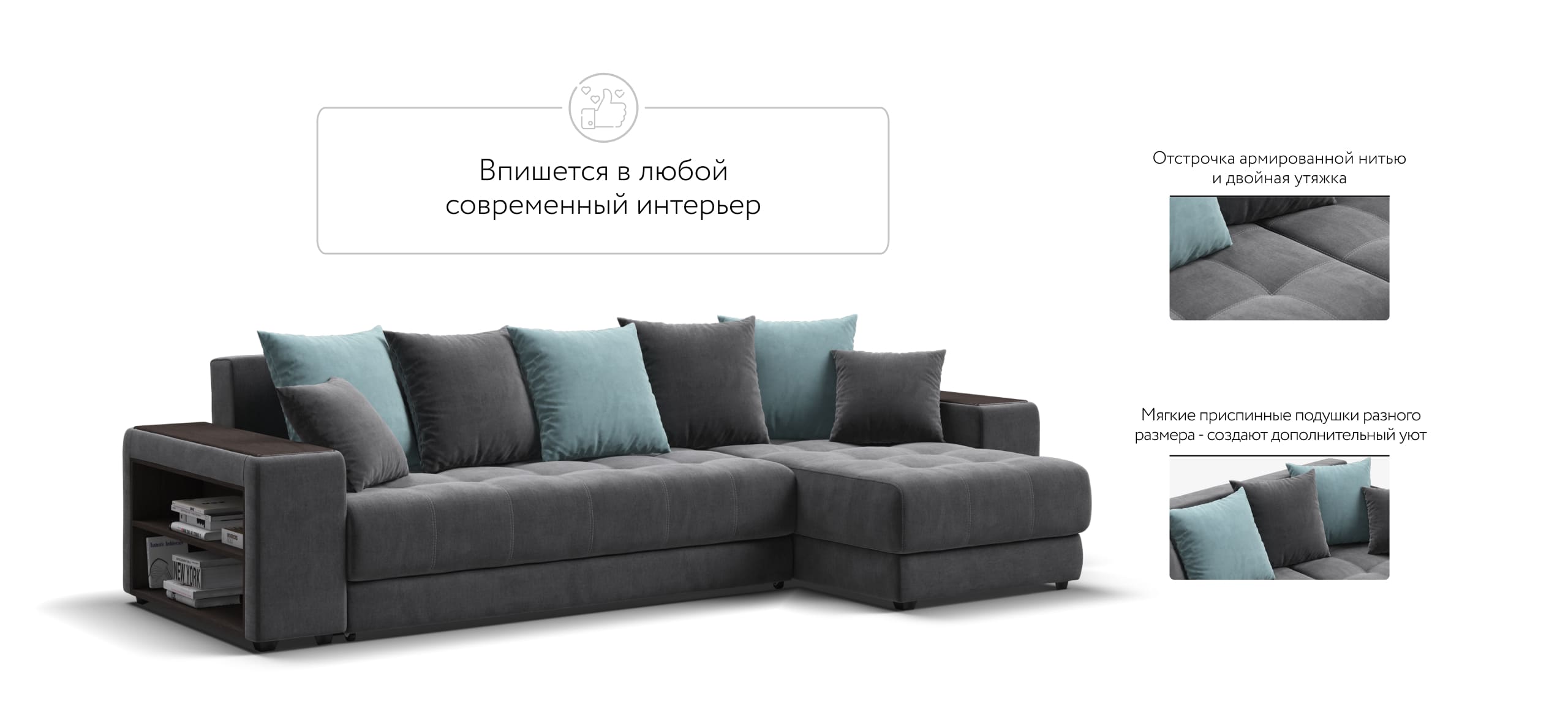 Просторный и очень удобный угловой диван Дубай станет стильным акцентом в Вашей гостиной и любимым местом для отдыха в кругу семьи и друзей. Его широкое сиденье и мягкие подушки с комфортом разместят даже большую компанию.