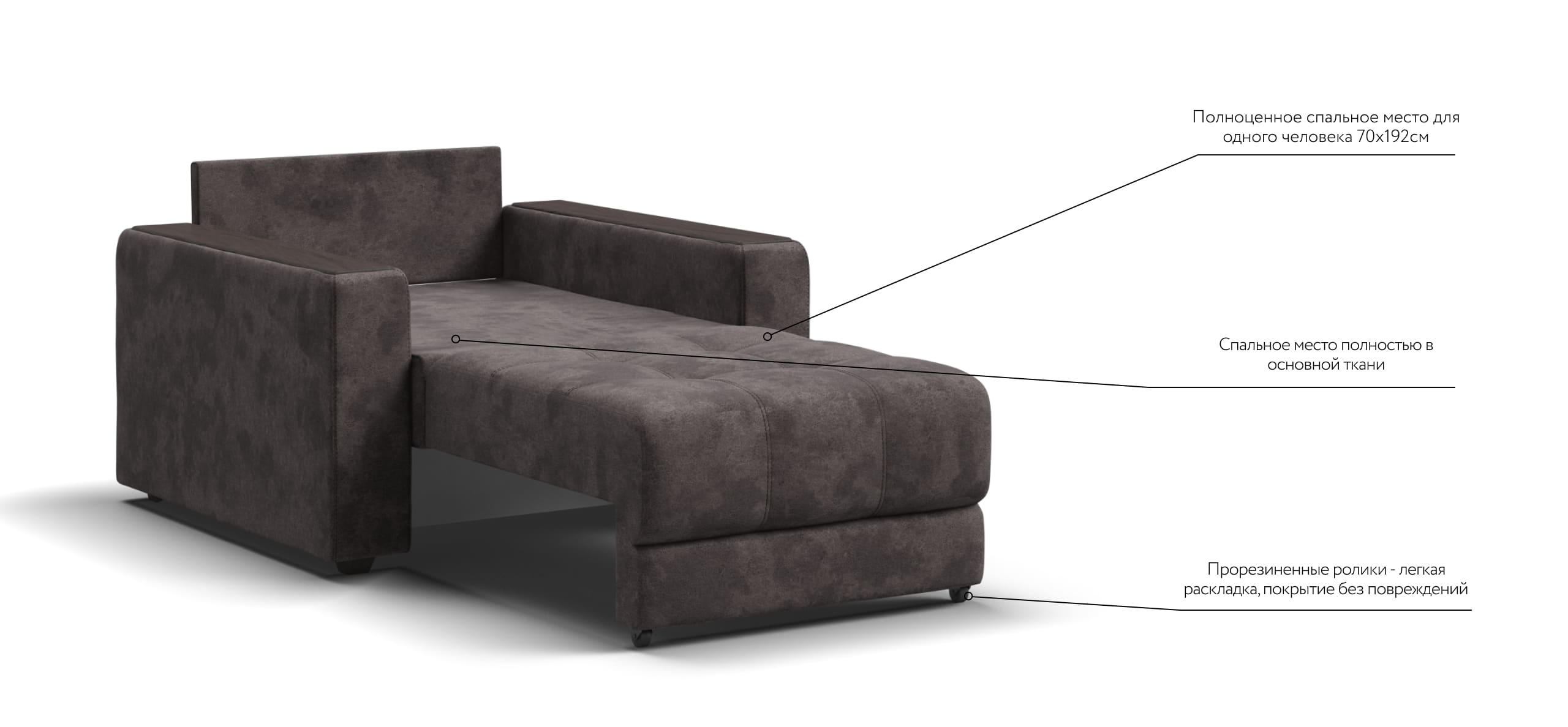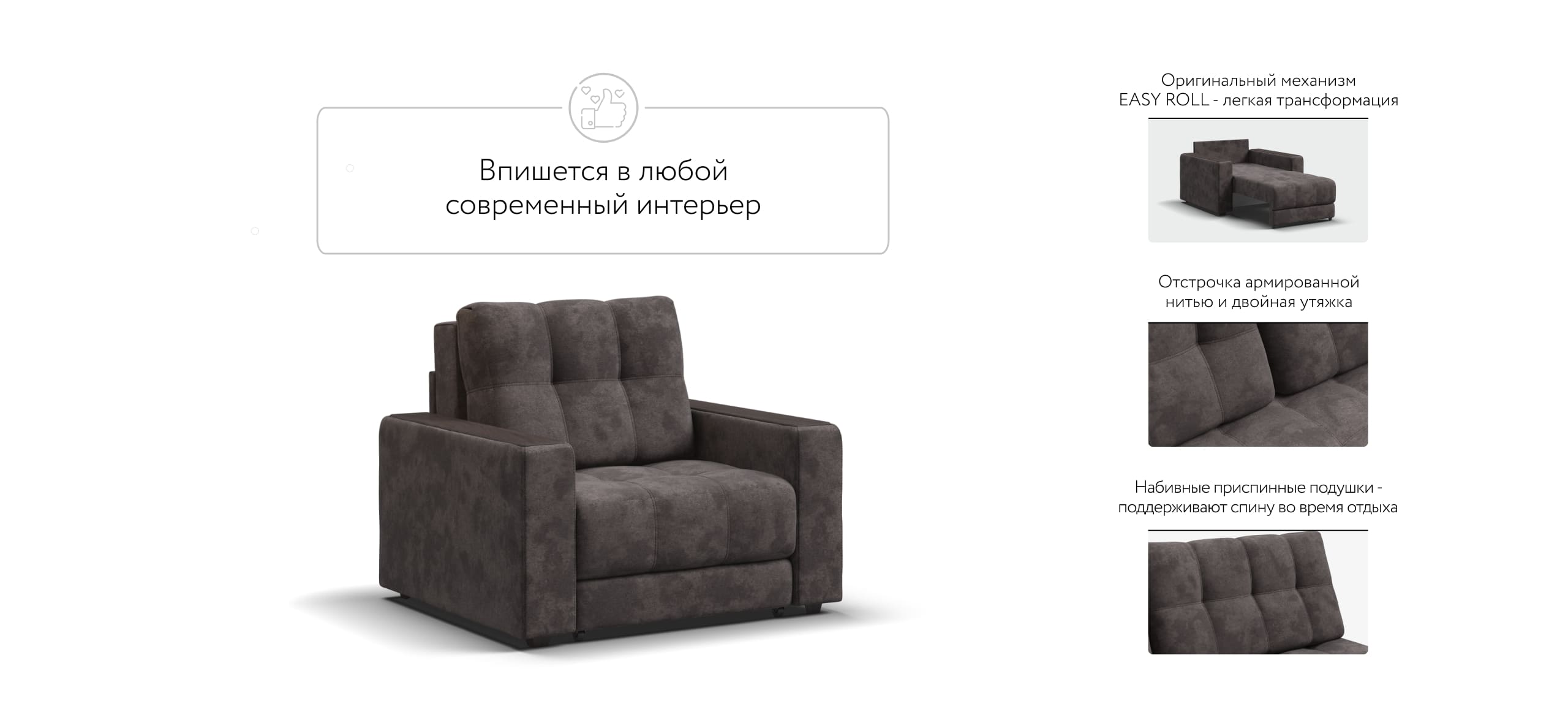 BOSS кресло-кровать – идеальное дополнение к диванам модельного ряда BOSS, отлично сочетает в себе две функции: подарит комфортный отдых днем и даст полноценное спальное место для гостя, который решил остаться у вас на ночь.