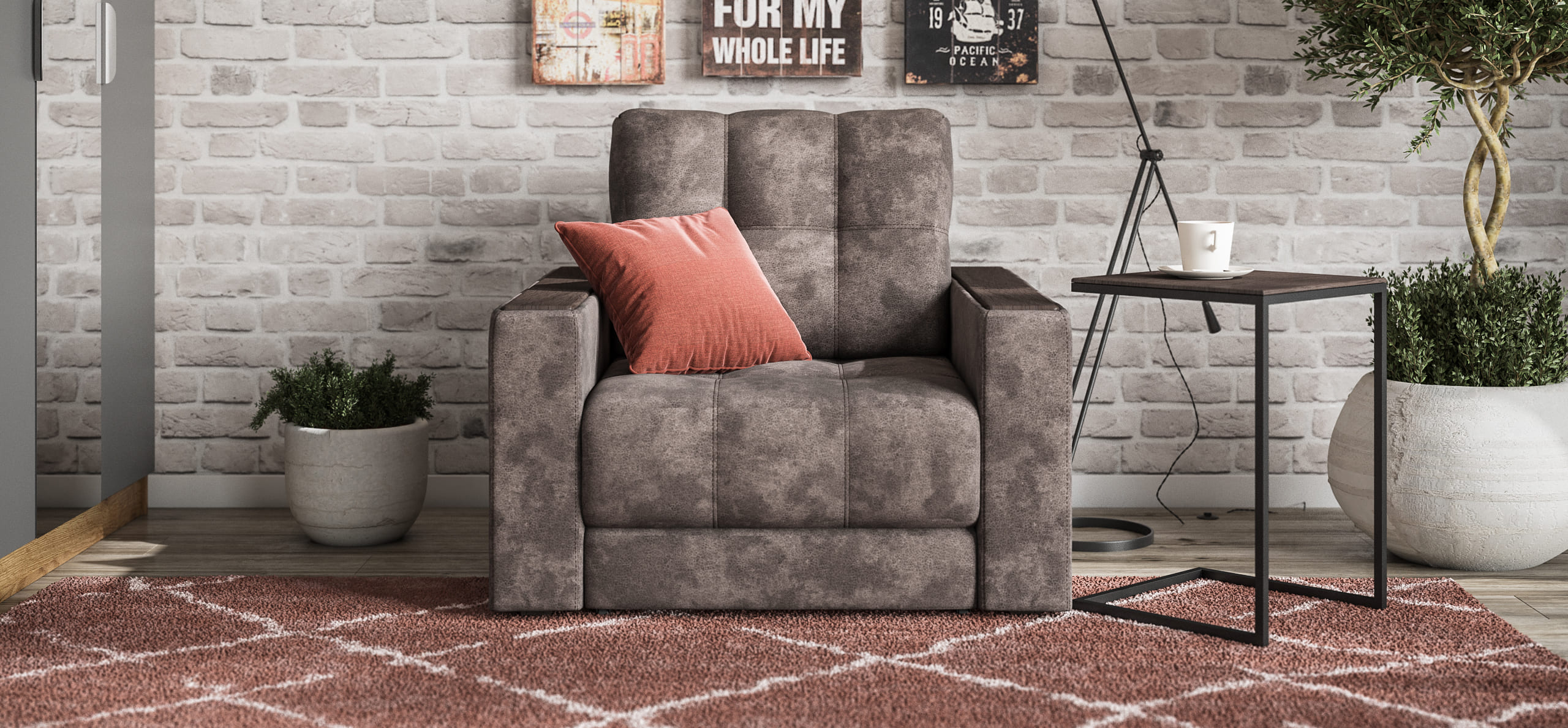 Кресло-кровать BOSS 2.0 велюр Alkantara серый