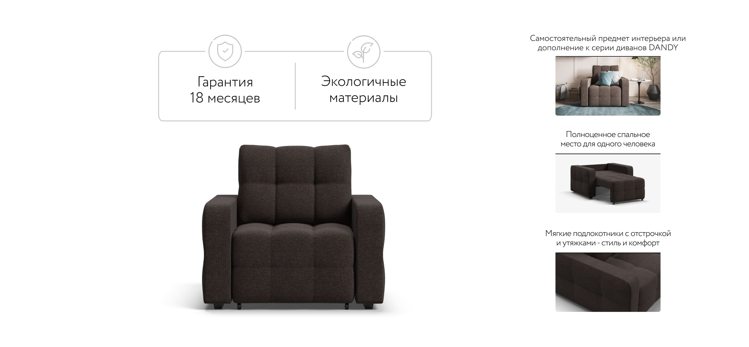 Кресло-кровать Dandy рогожка Malmo шоколад