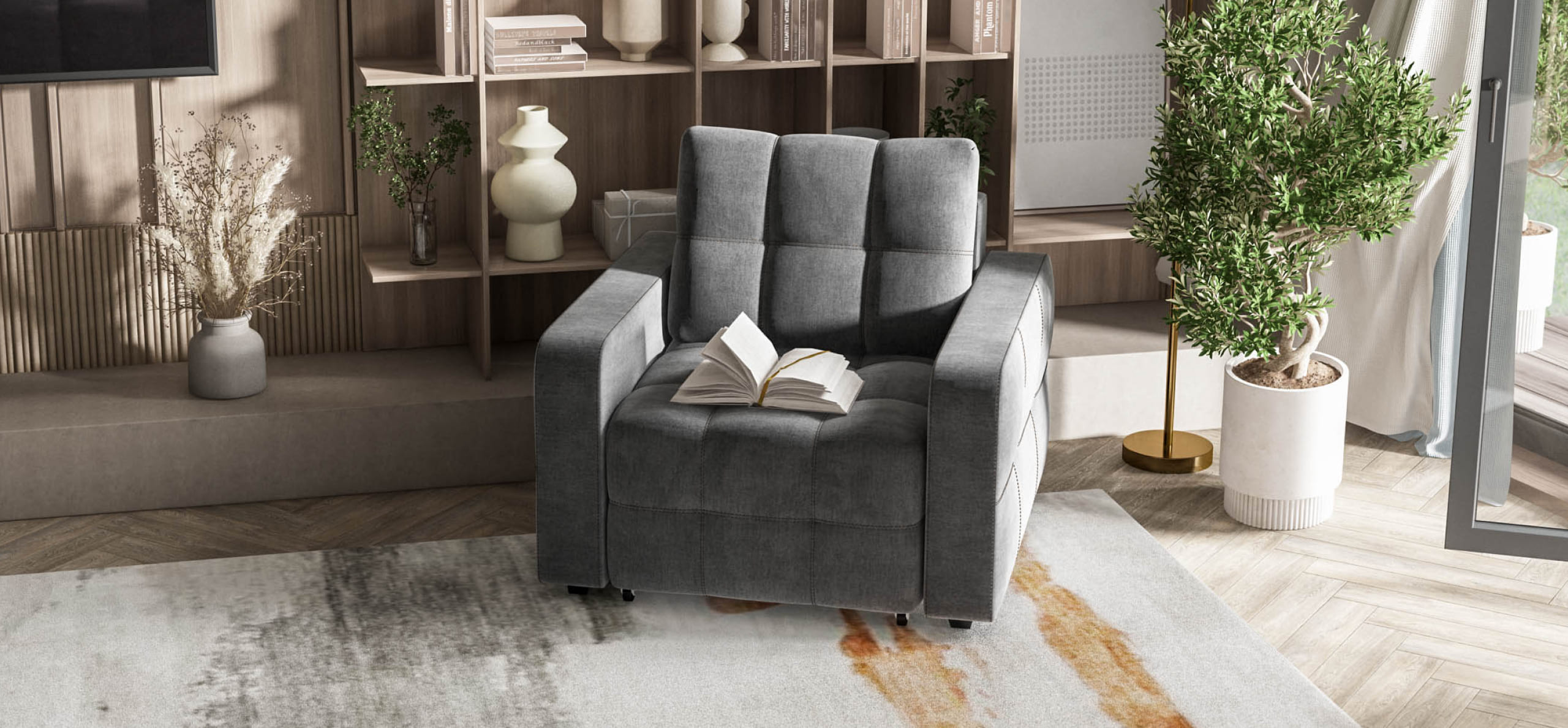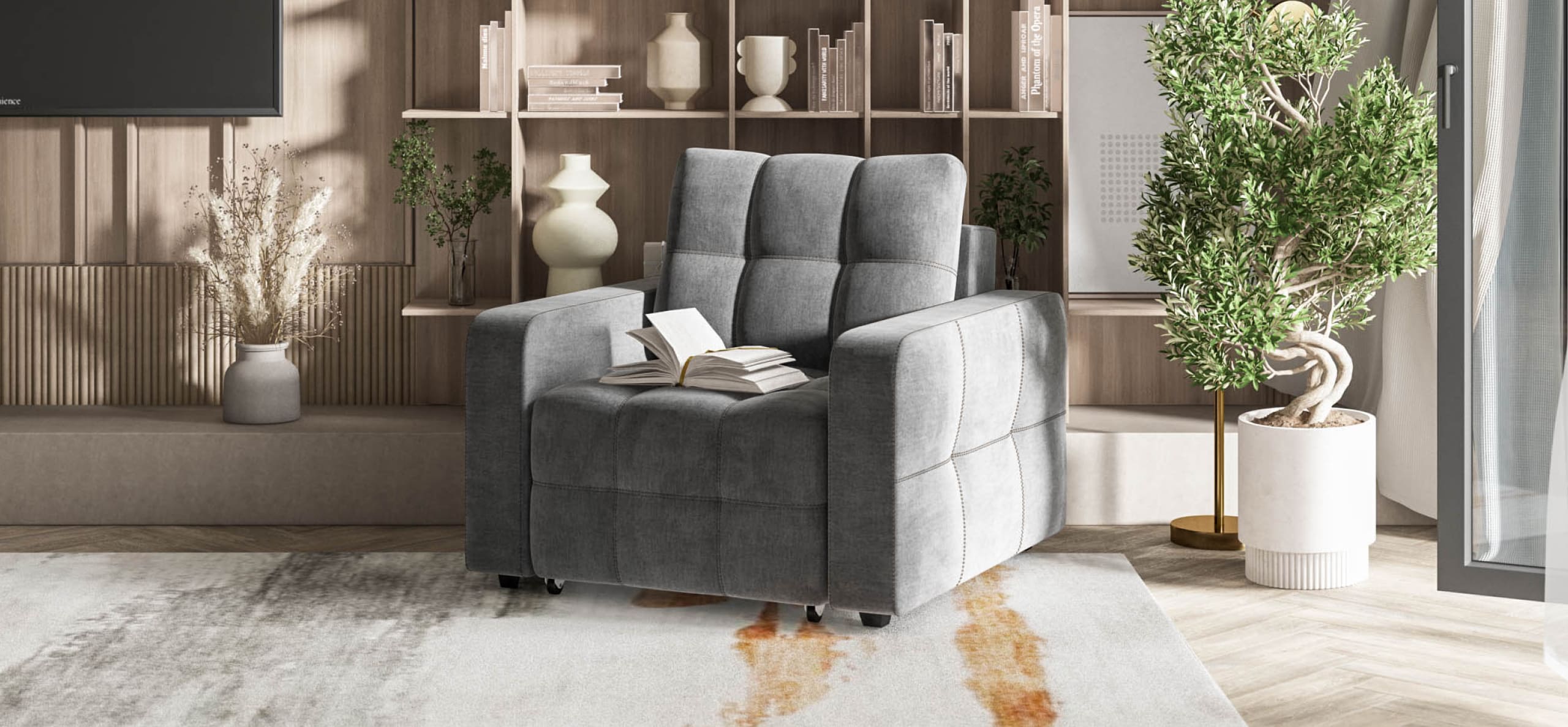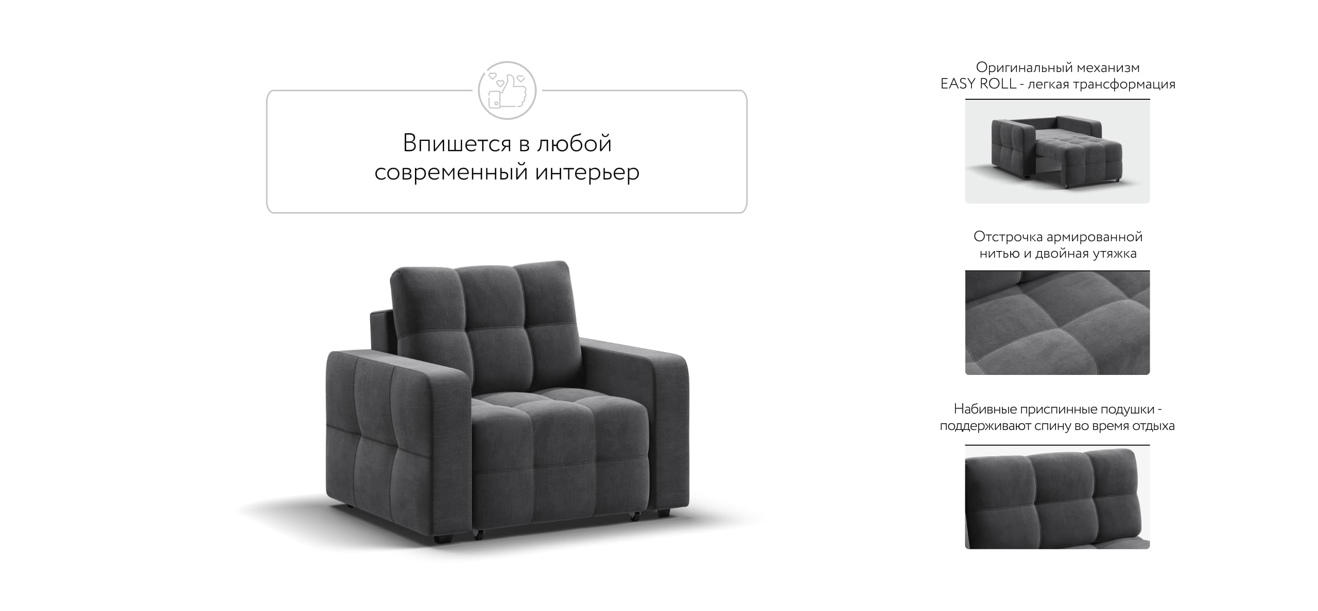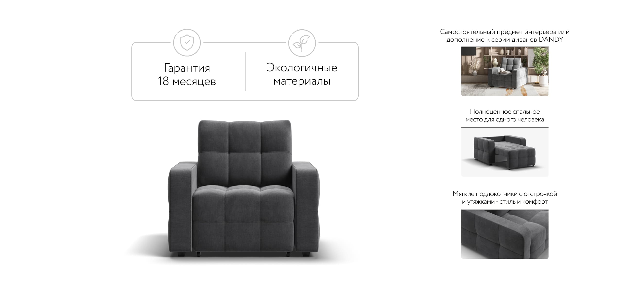 Dandy кресло-кровать с механизмом EASY-ROLL, которое отлично дополняет линейку диванов Dandy. Легким движением руки кресло раскладывается в удобную кровать.