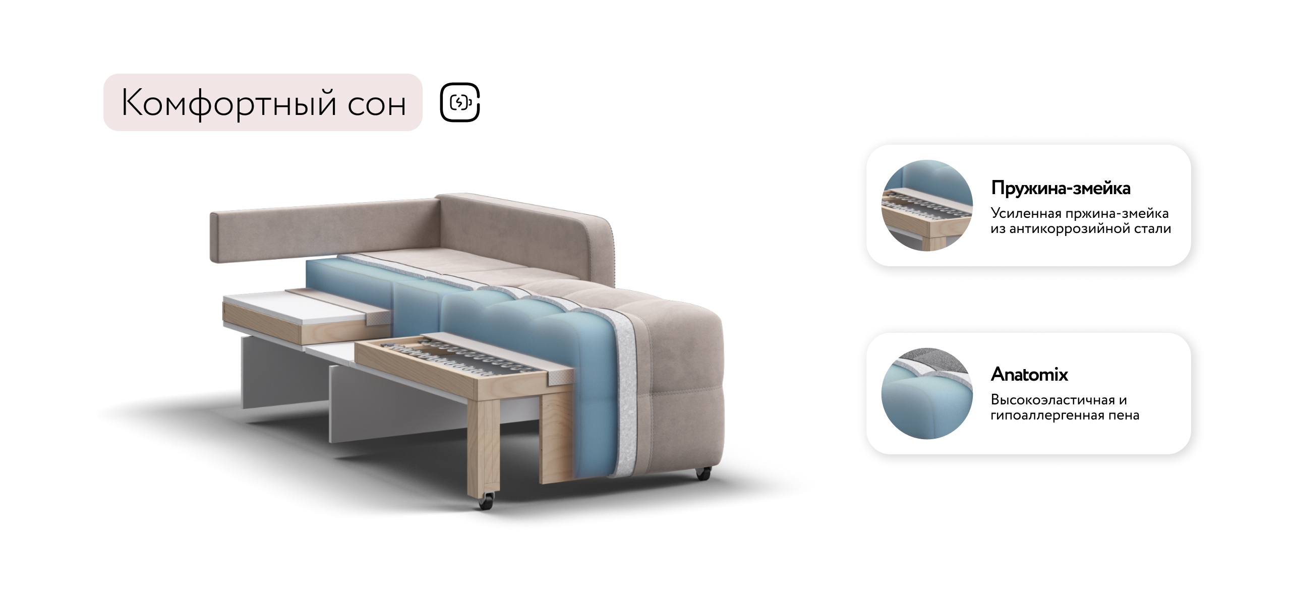 Ваш комфорт обеспечит матрас выполненный из высокоэластичного ППУ, в сочетании со стальной пружинной змейкой в основании