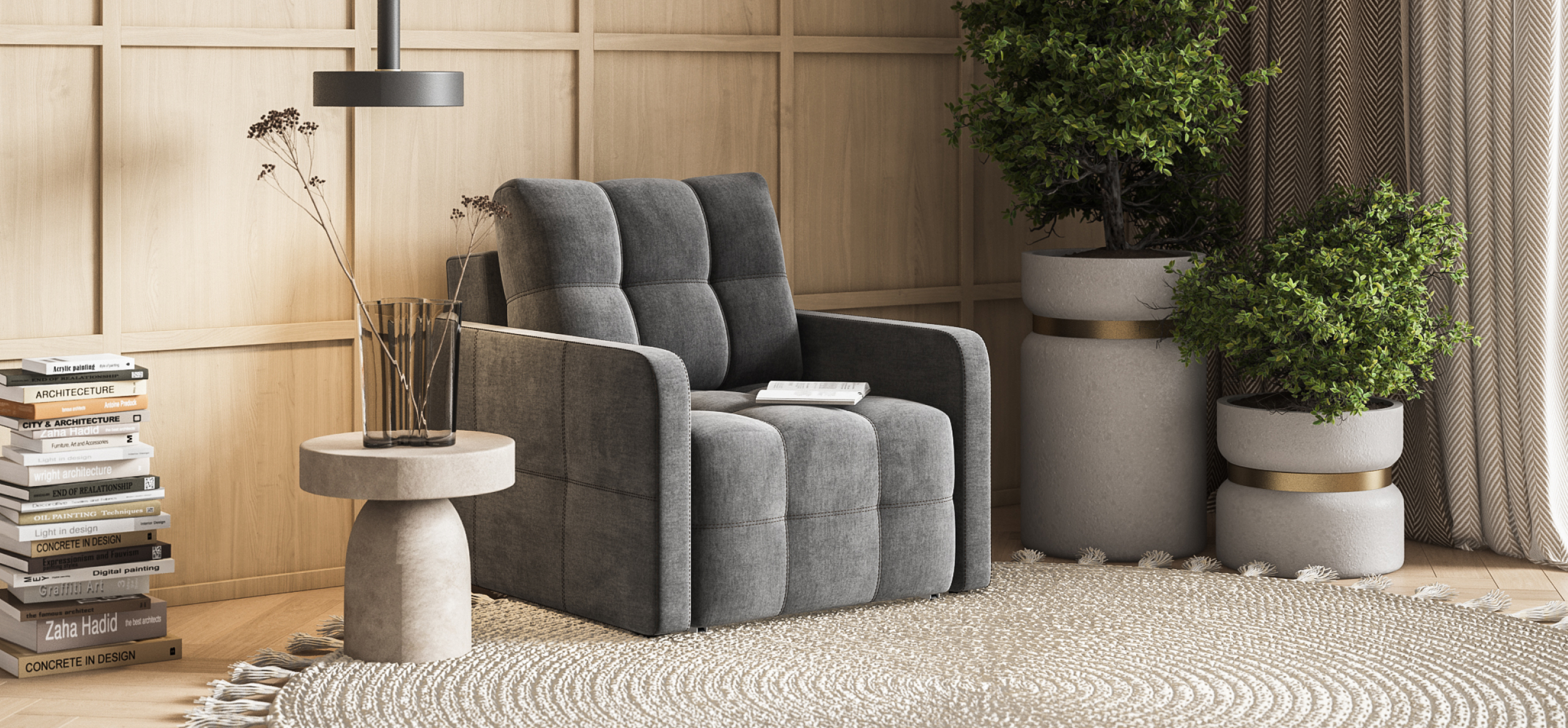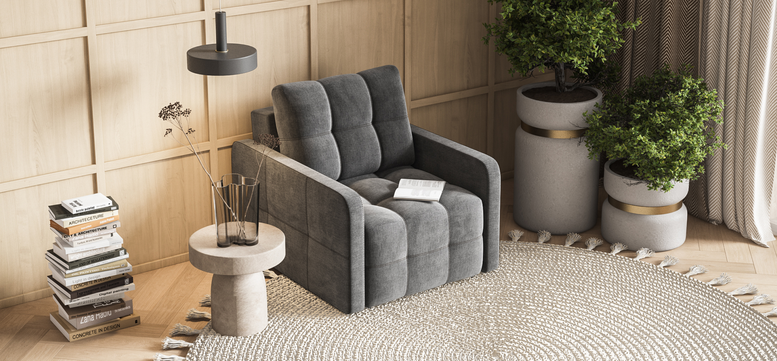 Благодаря современному механизму трансформации EASY-ROLL, кресло легко превращается в удобное спальное место, что делает его отличным вариантом для гостей или для уютных вечеров с книгой. С этим креслом-кроватью вы сможете создать атмосферу уюта и стиля в вашем доме, не жертвуя при этом свободным пространством.