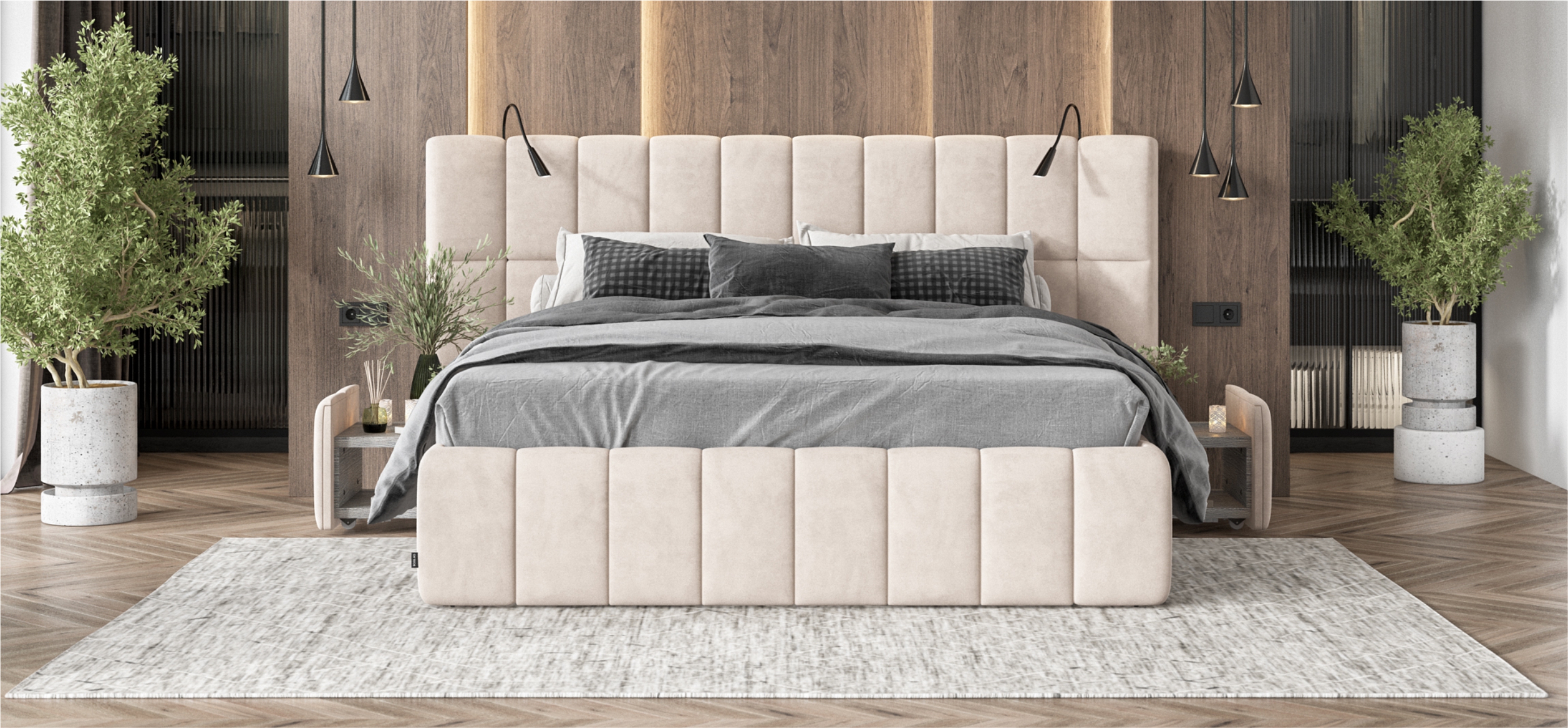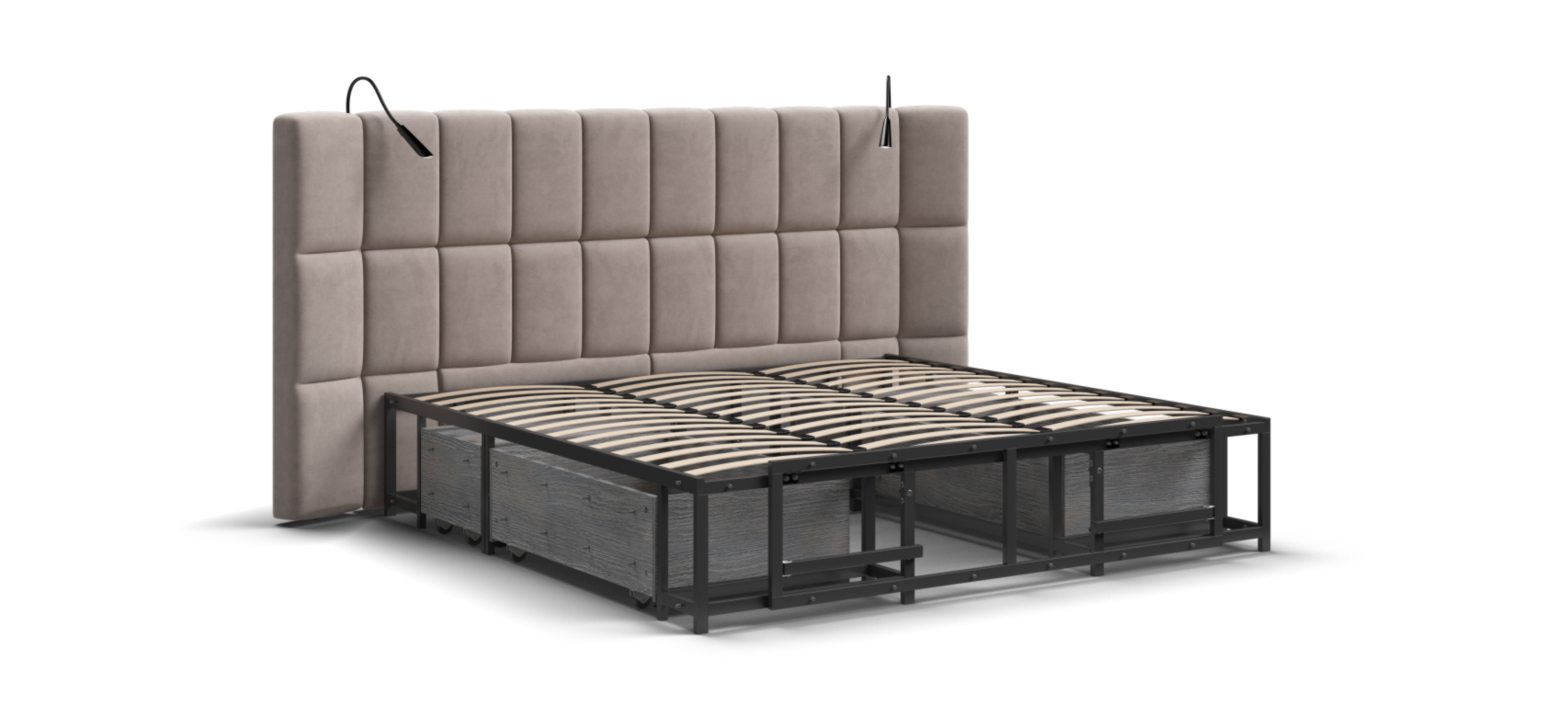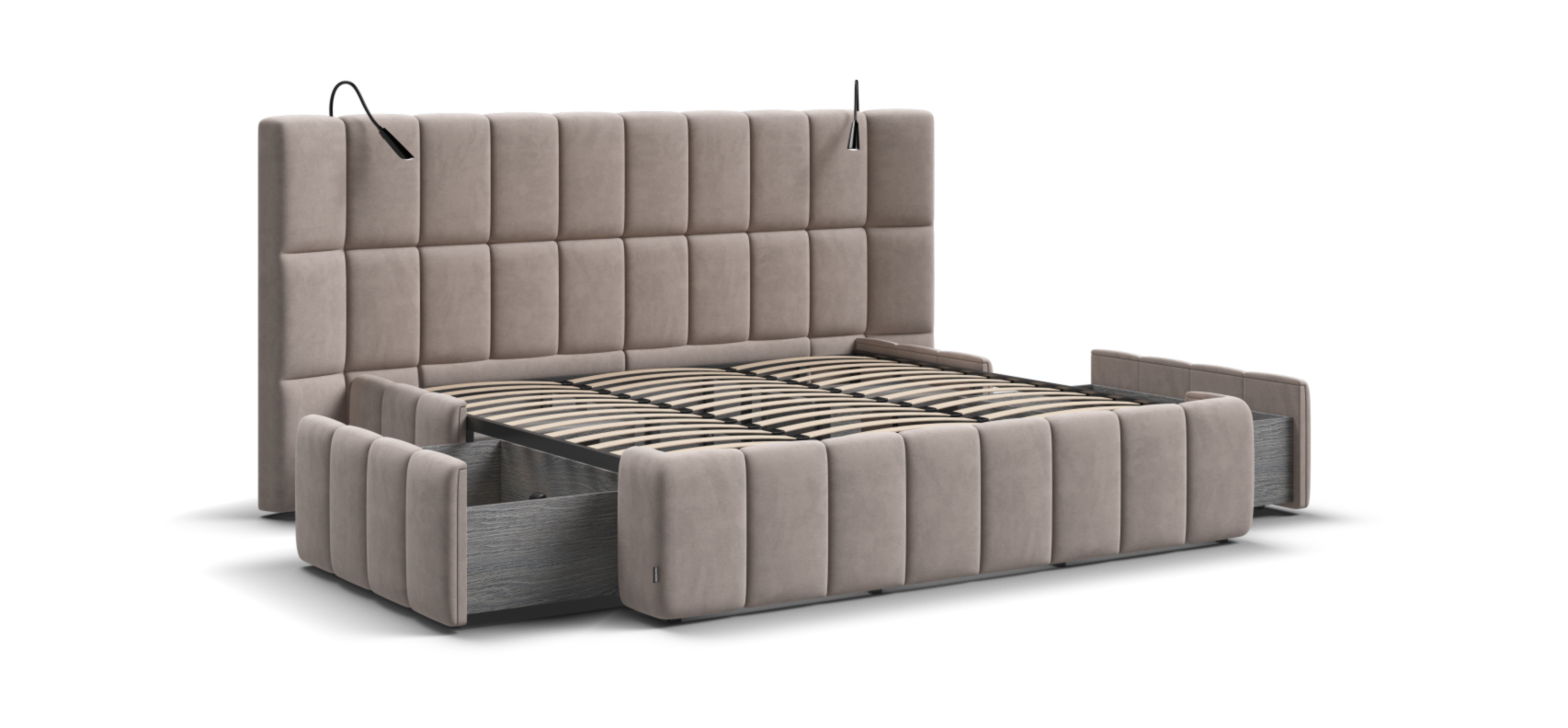 Каждая деталь очень качественно изготовлена. При сборке обратили внимание что в целом кровать очень продуманна, например при выдвижении тумбы, ящиков и банкетки не образуется пустое пространство куда например могут залезть домашние питомцы, все эти зоны продуманы перегородками.