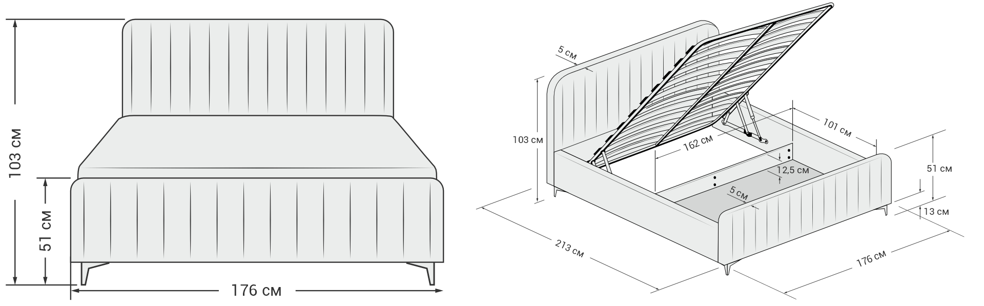 Металлический каркас укрепляет конструкцию, а комбинация с ортопедическим основанием, оснащенным подъемными механизмами, облегчает доступ к просторному ящику для хранения вещей, максимально используя каждый сантиметр пространства. Задняя часть спинки, выполнена из основной ткани, что позволяет размещать кровать в любой части комнаты, сохраняя эстетичность со всех сторон.