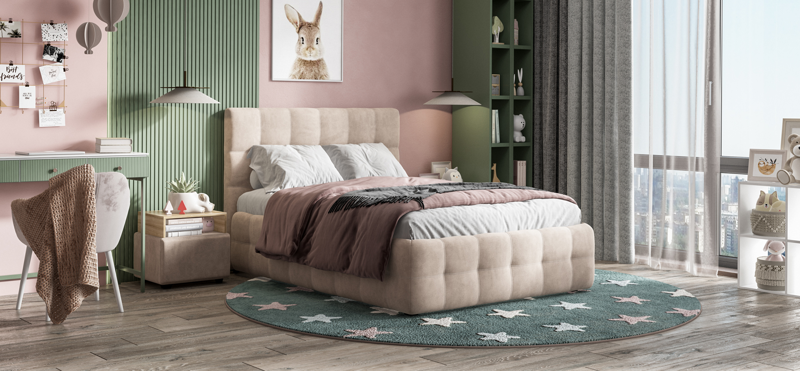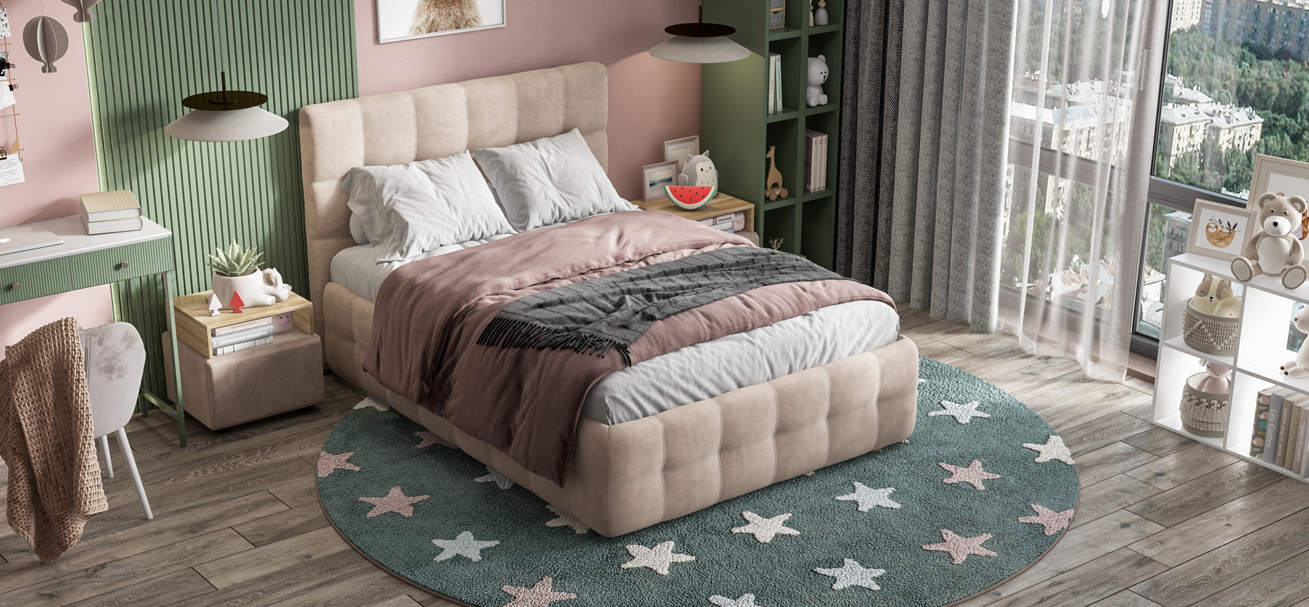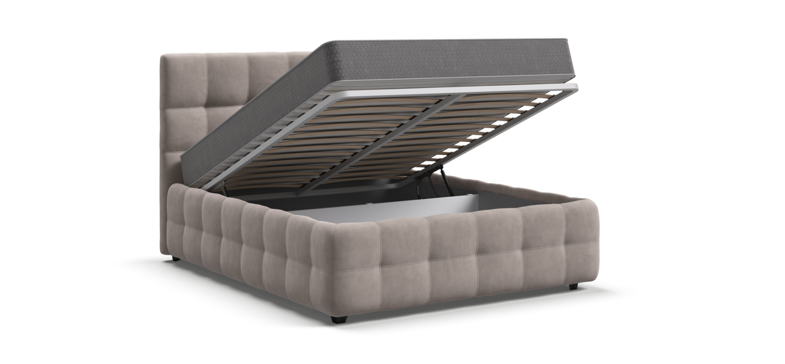 Особое внимание заслуживают газовые лифты SpaceLift, изготовленные из авиационного алюминия. Они обеспечивают лёгкое и плавное поднятие матраса, что делает доступ к отсеку для хранения быстрым и удобным. Дизайн 360 предполагает, что задняя часть спинки кровати также выполнена из основной ткани, что позволяет размещать кровать не только у стены, но и в центре комнаты, сохраняя при этом её эстетическую привлекательность.