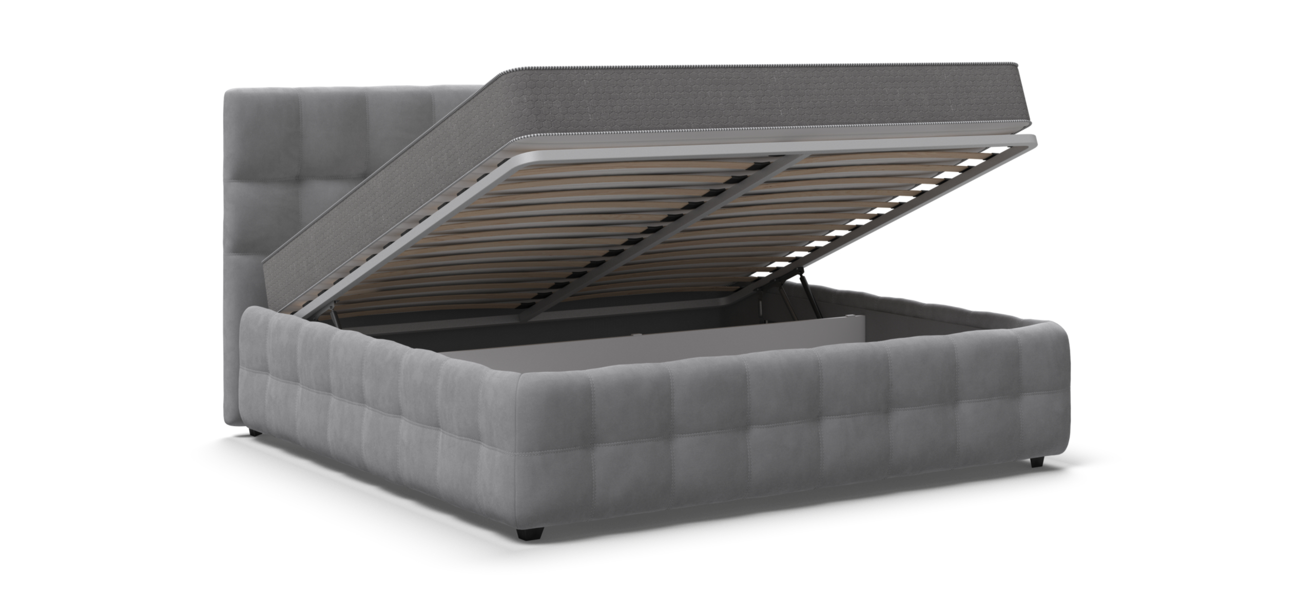 Особое внимание заслуживают газовые лифты SpaceLift, изготовленные из авиационного алюминия. Они обеспечивают лёгкое и плавное поднятие матраса, что делает доступ к отсеку для хранения быстрым и удобным. Дизайн 360 предполагает, что задняя часть спинки кровати также выполнена из основной ткани, что позволяет размещать кровать не только у стены, но и в центре комнаты, сохраняя при этом её эстетическую привлекательность.