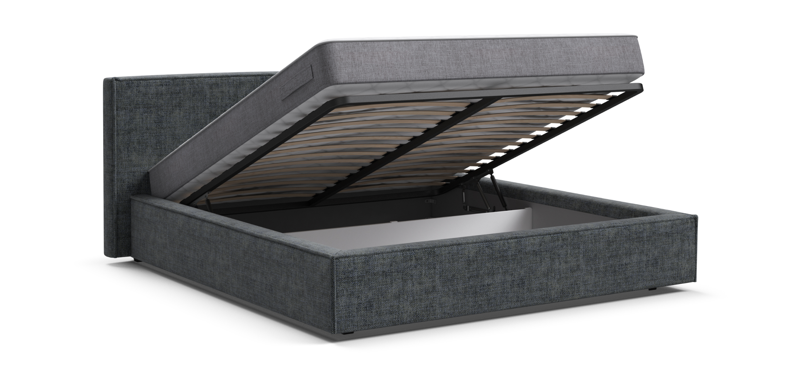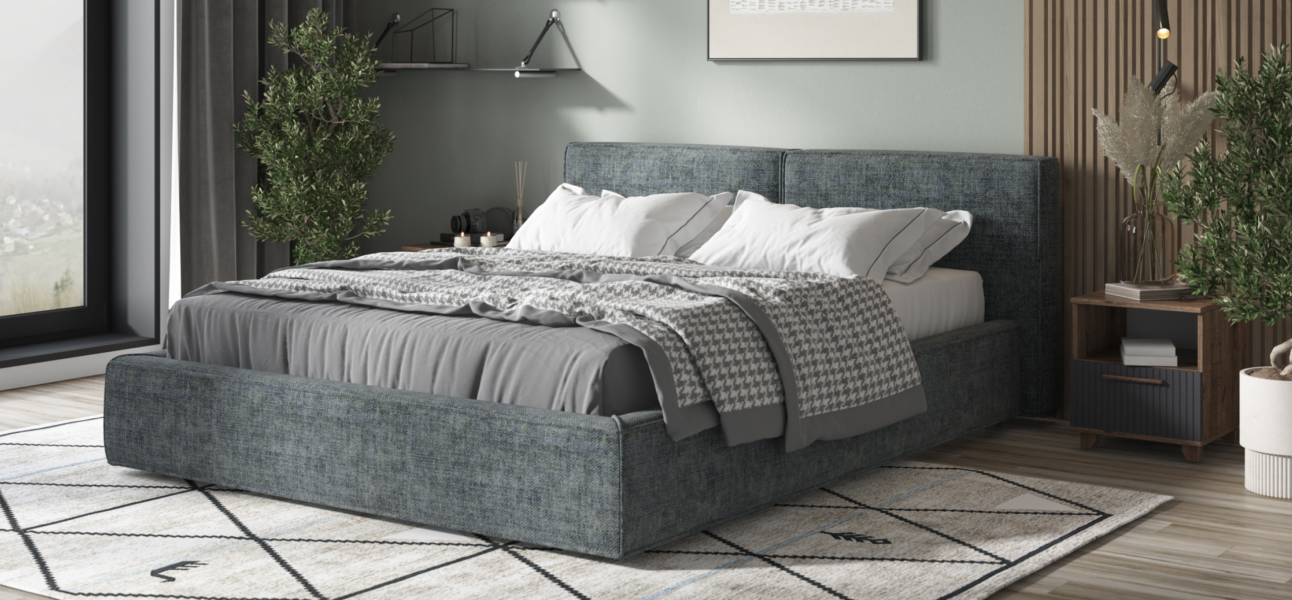 NORD также предлагает практичные решения для ежедневного использования, включая просторный бельевой ящик, который облегчает хранение и помогает сохранять порядок в спальне. Эта кровать обеспечивает не только эстетическое удовольствие, но и повседневный комфорт и удобство.